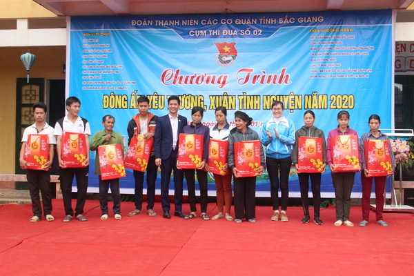 Tại Chương trình, Cụm thi đua số 02 tặng “Điểm vui chơi giải trí” cho học sinh trị giá 15 triệu đồng. Dịp này, Chi đoàn 26/3 Cơ quan Tỉnh đoàn, Hội LHTN tỉnh đã vận động các tổ chức, cá nhân, đơn vị trao nhiều phần quà như: Hội Doanh nhân trẻ tỉnh Bắc Giang tặng 20 chăn ấm cho 20 em học sinh và 10 suất quà tết cho 10 gia đình có hoàn cảnh đặc biệt khó khăn, tổng trị giá hơn 10 triệu đồng; Chi đoàn Phòng khám đa khoa giao thông vận tải Bắc Giang tặng 20 suất quà và tiền mặt, tổng trị giá 07 triệu đồng; Công ty TNHH Minh Trung trao 30 suất quà cho 30 em học sinh; Đoàn cơ sở Phòng cảnh sát cơ động công an tỉnh tặng kinh phí hỗ trợ cho 01 em học sinh có hoàn cảnh khó khăn vươn lên học tập trong 01 năm học, số tiền 3,6 triệu đồng; Trung tâm chăm sóc xe cao cấp Tino’s Auto Spa trao kinh phí hỗ trợ cho 02 em học sinh có hoàn cảnh đặc biệt khó khăn vươn lên học tập trong 02 năm học, trị giá 7,2 triệu đồng/01 em; Công ty Nghệ thuật AHC và Hội cha mẹ học sinh trao tặng 18 suất quà cho 18 em học sinh có hoàn cảnh khó khăn, mỗi suất 500.000 đồng; Nhóm Friengs For VietNamese Kids tại Bỉ tặng quà và tiền mặt cho 02 học sinh khó khăn trị giá 06 triệu đồng. Bên cạnh đó, chị Diêm Thị Yến tặng 14 chiếc thảm trải giường cho 14 em học sinh; chị Tống Ngọc Oanh (phường Dĩnh Kế, TP Bắc Giang) tặng 02 triệu đồng cho 01 em học sinh đặc biệt khó khăn; chị Nguyễn Thị Ánh Tuyết vận động tặng 34 chiếc quần, áo ấm mới cho học sinh, Cũng tại chương trình, Đoàn xã Phong Minh trao tặng công trình thanh niên hỗ trợ đổ sân bê tông Nhà văn hóa thôn Nũn trị giá 3 triệu đồng. Tổng trị giá quà tặng trên 80 triệu đồng.