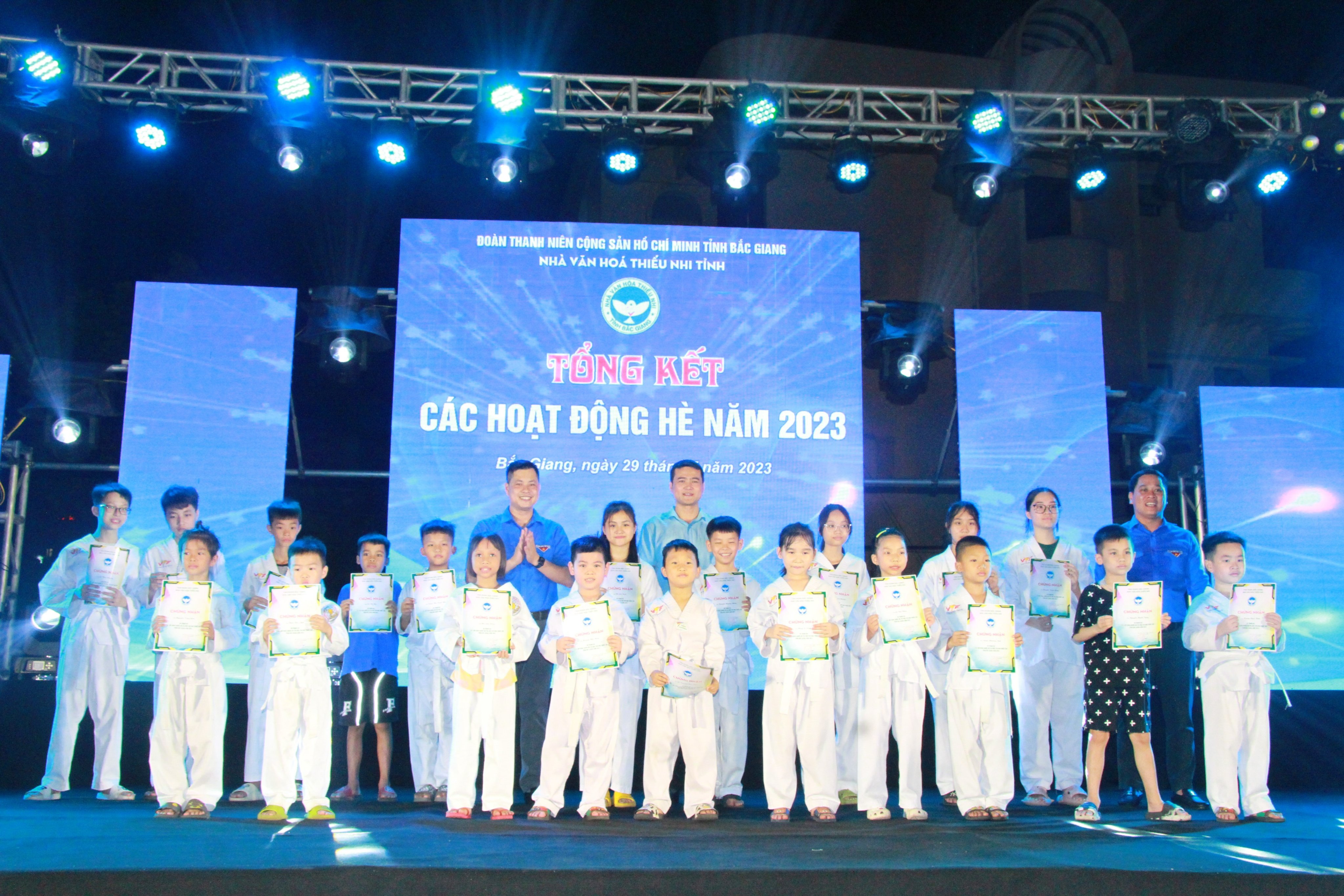 Bằng sự nỗ lực của lãnh đạo, tập thể cán bộ Nhà VHTN cùng sự năng động và nhiệt tình, tâm huyết của các thầy cô giáo là cộng tác viên, sự tham gia tích cực của các em thiếu nhi, các Hoạt động hè năm 2023 đã thành công rực rỡ và đã hoàn thành 100% chương trình, kế hoạch đề ra. Dịp này, Nhà Văn hóa Thiếu nhi tỉnh tặng giấy chứng nhận cho các em thiếu nhi tích cực tham gia các hoạt động hè năm 2023.