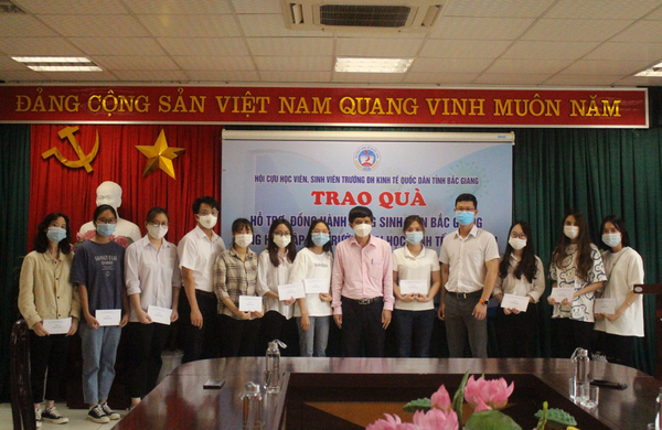 Tại đây, Hội Cựu học viên, sinh viên trường Trường Đại học Kinh tế Quốc dân quyết định trao tặng 35 suất quà cho 35 sinh viên quê Bắc Giang đang học tại Trường Đại học Kinh tế Quốc dân mỗi suất 2 triệu đồng, với tổng số tiền 70 triệu đồng.