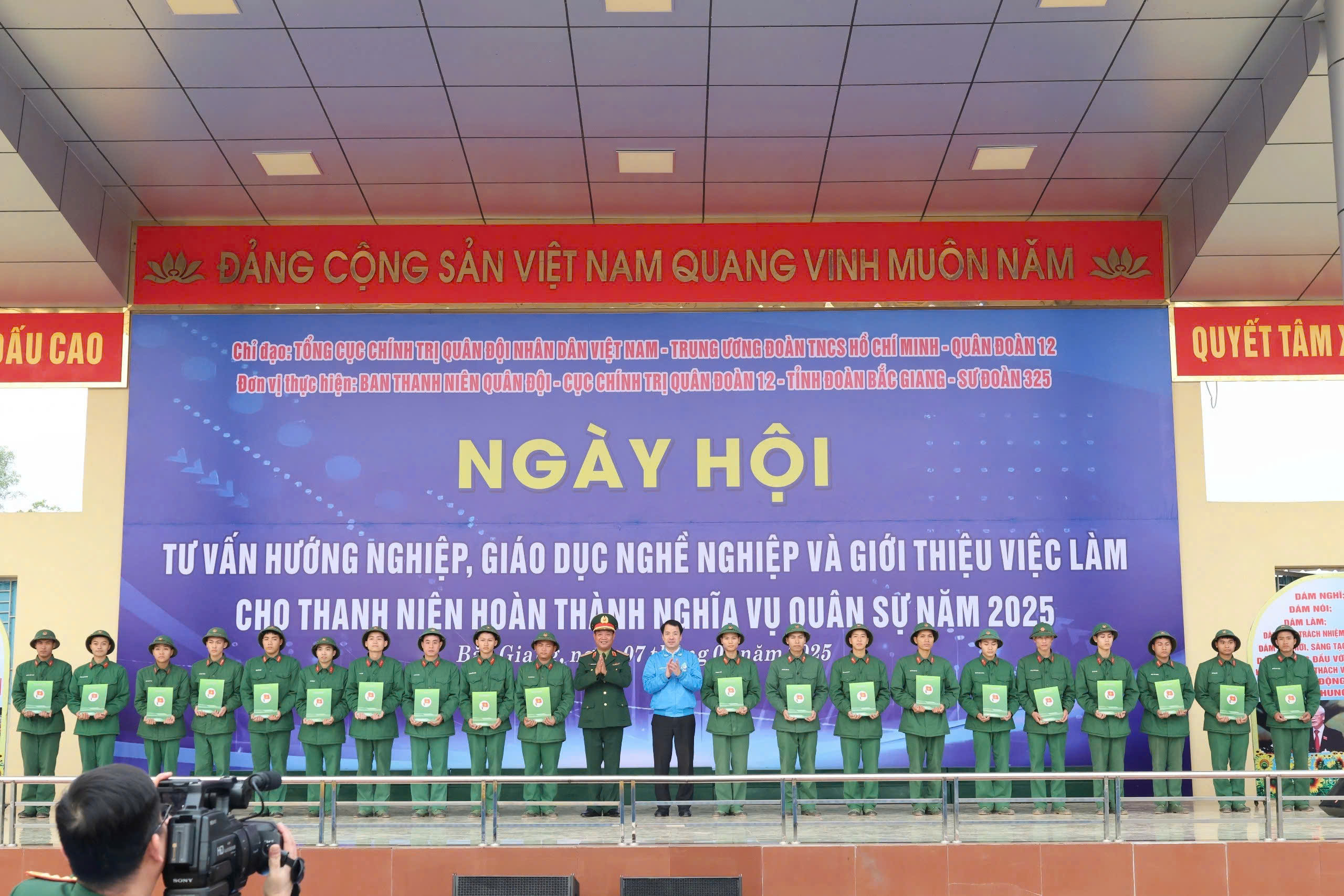 Ngày 07/01/2025, tại Trung đoàn 18, Sư đoàn 325, Quân đoàn 12, Ban Thường vụ Tỉnh đoàn Bắc Giang phối hợp Ban Thanh niên Quân đội, Cục Chính trị Quân đoàn 12, Sư đoàn 325 đăng cai tổ chức Ngày hội “Tư vấn hướng nghiệp, giáo dục nghề nghiệp và giới thiệu việc làm cho thanh niên hoàn thành nghĩa vụ quân sự năm 2025” cấp Trung ương.