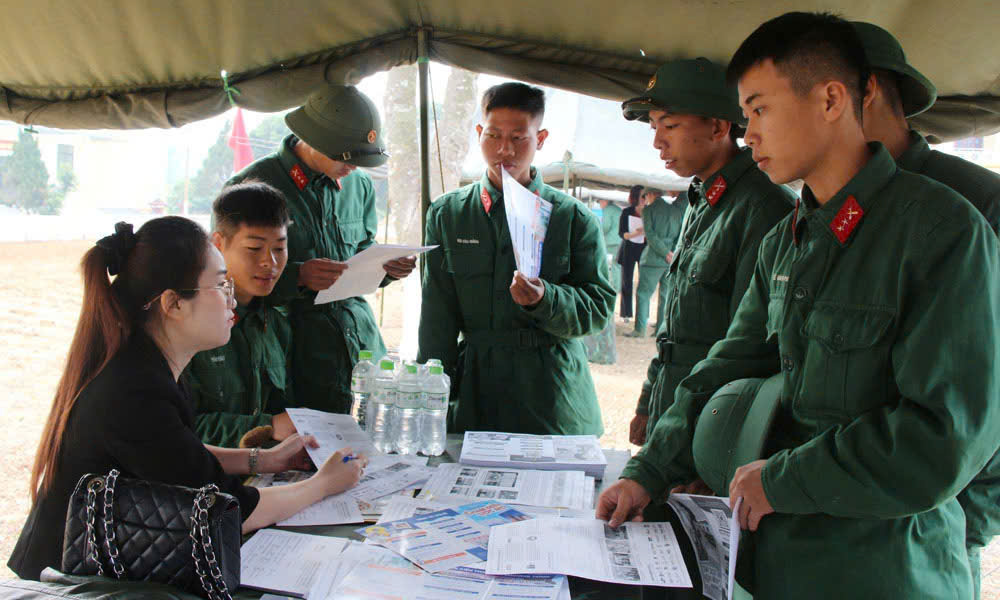 Các chiến sĩ được tư vấn hướng nghiệp việc làm sau hoàn thành nghĩa vụ quân sự tại ngày hội