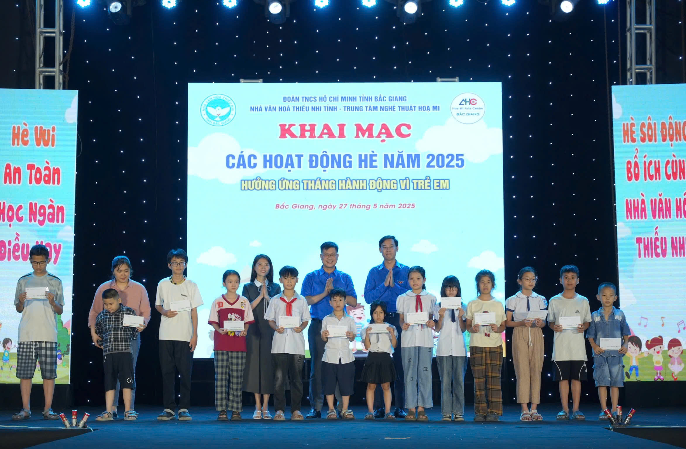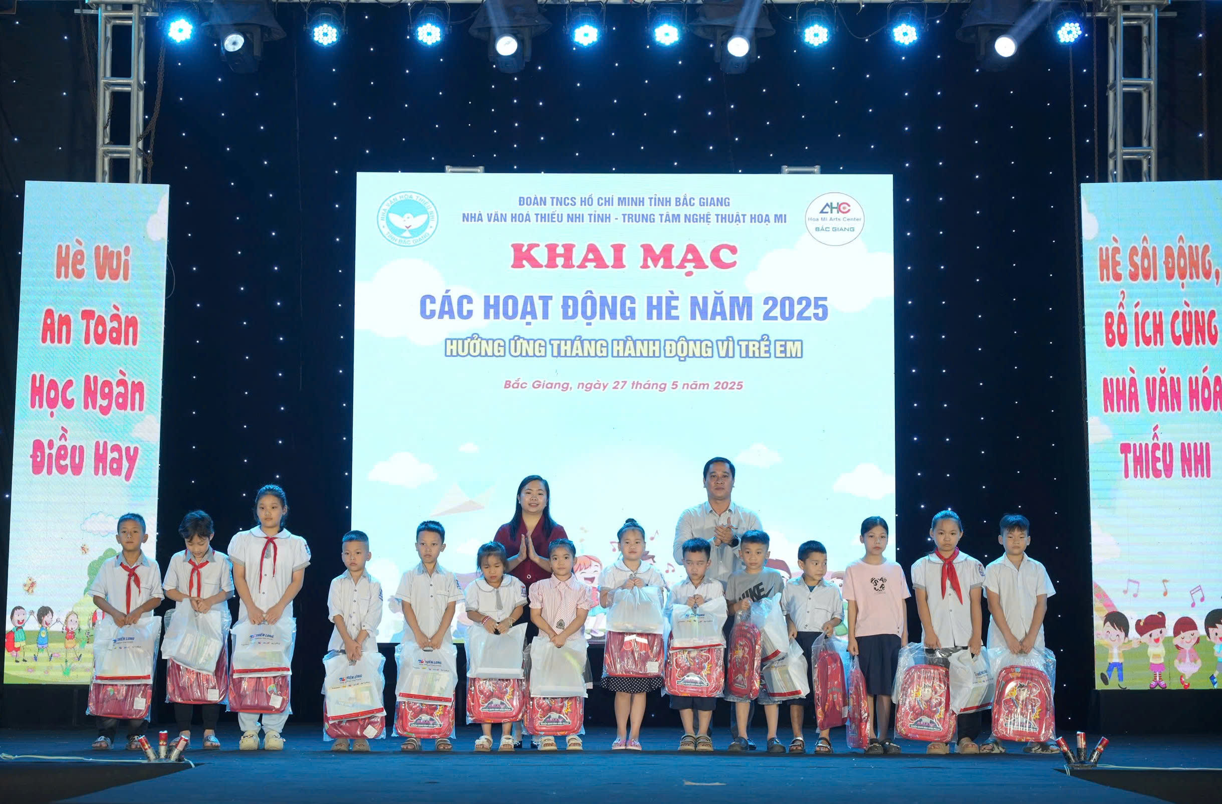 Hưởng ứng tháng hành động vì trẻ em năm 2025 và nhân ngày quốc tế thiếu nhi 1/6, nhằm đẩy mạnh các hoạt động “Vì đàn em thân yêu” và triển khai có hiệu quả các hoạt động chăm lo, giúp đỡ trẻ em có hoàn cảnh khó khăn, Nhà Văn hoá Thiếu nhi tỉnh và Trung tâm Nghệ thuật Hoạ Mi đã trao 45 suất quà cho học sinh có hoàn cảnh khó khăn trên địa bàn Thành phố Bắc Giang, mỗi suất quà trị giá 400.000đ.
