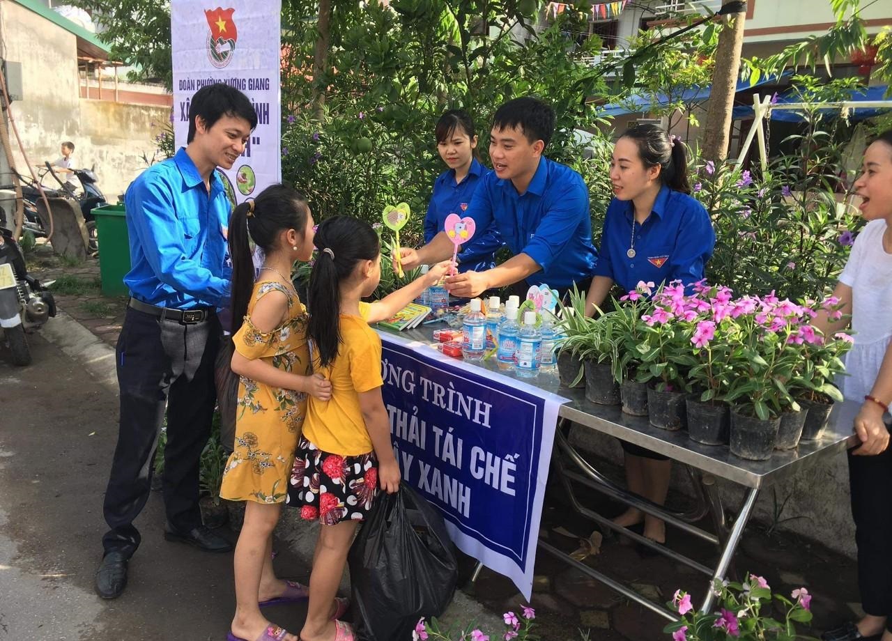 ĐVTN phường Xương Giang, thành phố Bắc Giang tổ chức điểm đổi rác tái chế lấy cây xanh