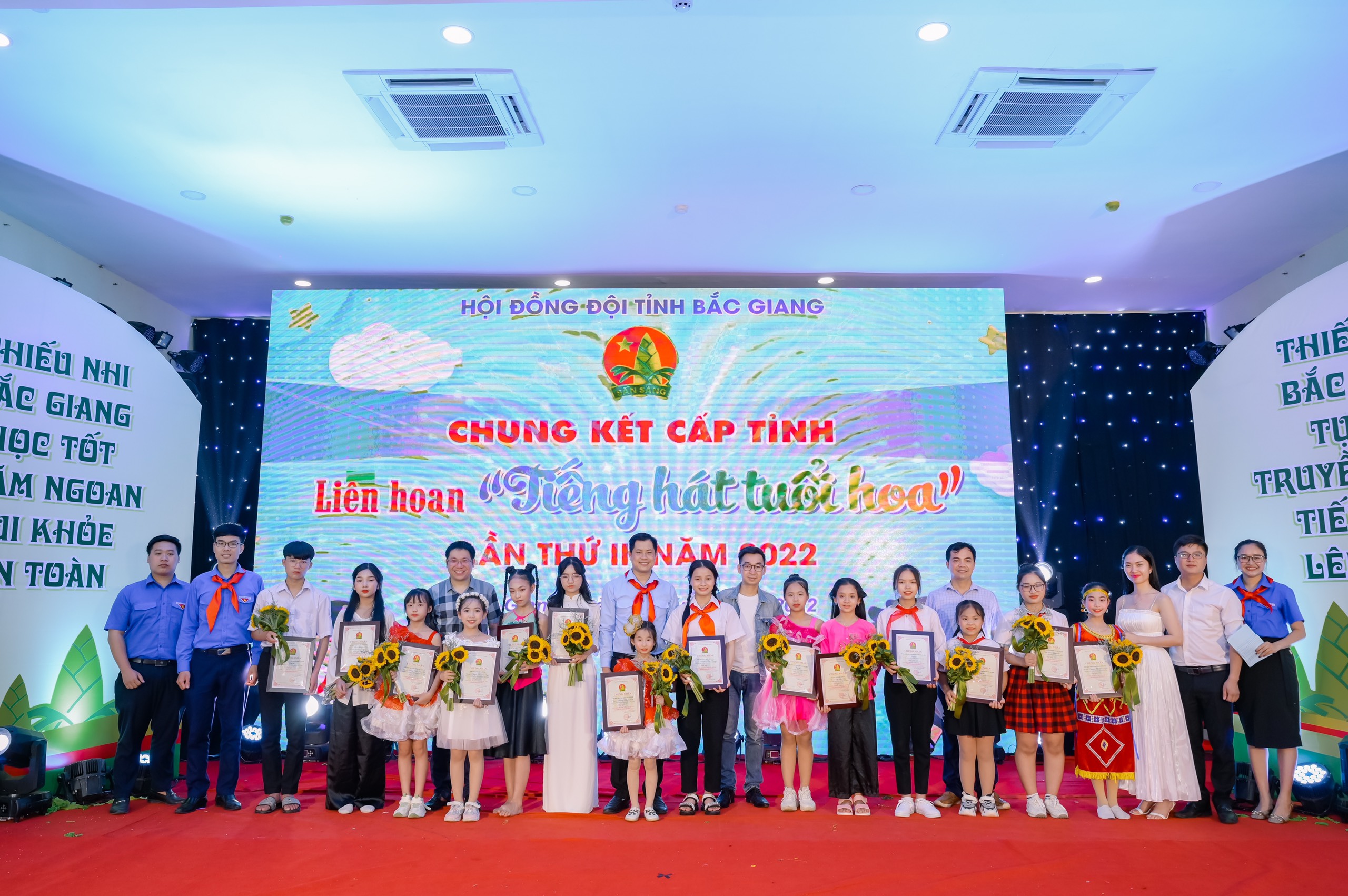 Kết thúc Chương trình Ban Tổ chức đã trao trao 2 Giải A, 4 giải B và 4 Giải C cho “Liên hoan đội nghi thức chuẩn" tỉnh Bắc Giang lần thứ I, Giải A thuộc về đơn vị thành phố Bắc Giang. Ban Tổ chức trao 01 giải đơn vị có nhiều bài dự thi nhất cho Hội đồng Đội huyện Lục Ngạn; trao 2 Giải A, 4 Giải B, 6 Giải C và 8 Giải Triển vọng cho “Liên hoan Tiếng hát tuổi hoa tỉnh Bắc Giang lần thứ II”; Giải A bảng tiểu học thuộc về thí sinh Nguyễn Thị Bảo Ngọc trường Tiểu học Liên Sơn huyện Tân Yên; Tiết mục Tốp ca “Ai yêu Bác Hồ Chí Minh hơn thiếu niên nhi đồng” trường THCS Tiên Lục huyện Lạng Giang giành giải A bảng THCS./.