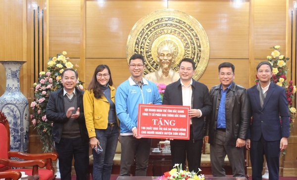 Đại biểu Tỉnh đoàn, Hội LHTN tỉnh, Hội Doanh nhân trẻ tỉnh trao quà hỗ trợ người dân có hoàn cảnh khó khăn cho Huyện ủy Sơn Động