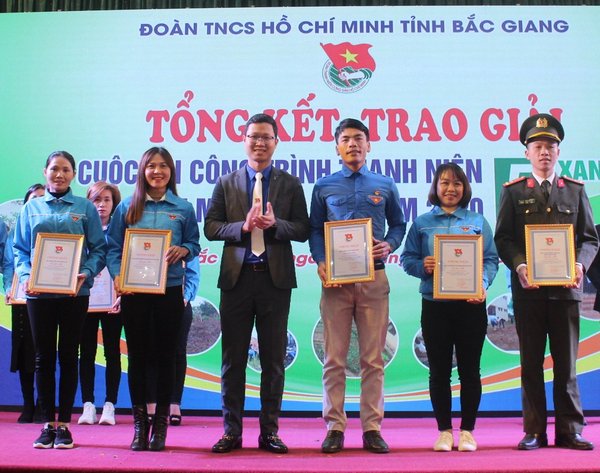 Đồng chí Thân Trung Kiên - Bí thư Tỉnh đoàn, Chủ tịch Hội LHTN tỉnh trao giải thưởng Cuộc thi Công trình thanh niên “5 xanh”.