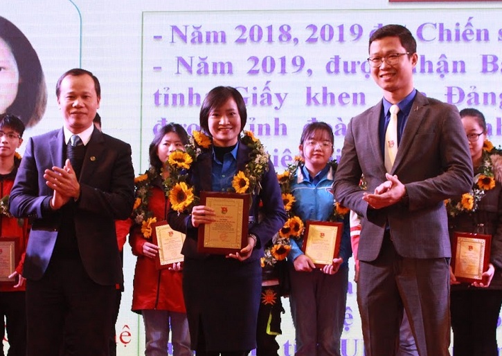 Đồng chí Mai Sơn - Ủy viên Ban Thường vụ Tỉnh ủy, Phó Chủ tịch Thường trực UBND tỉnh và đồng chí Thân Trung Kiên - Tỉnh ủy viên, Bí thư Tỉnh đoàn, Chủ tịch Hội LHTN tỉnh trao giải thưởng cho các gương mặt trẻ tiêu biểu