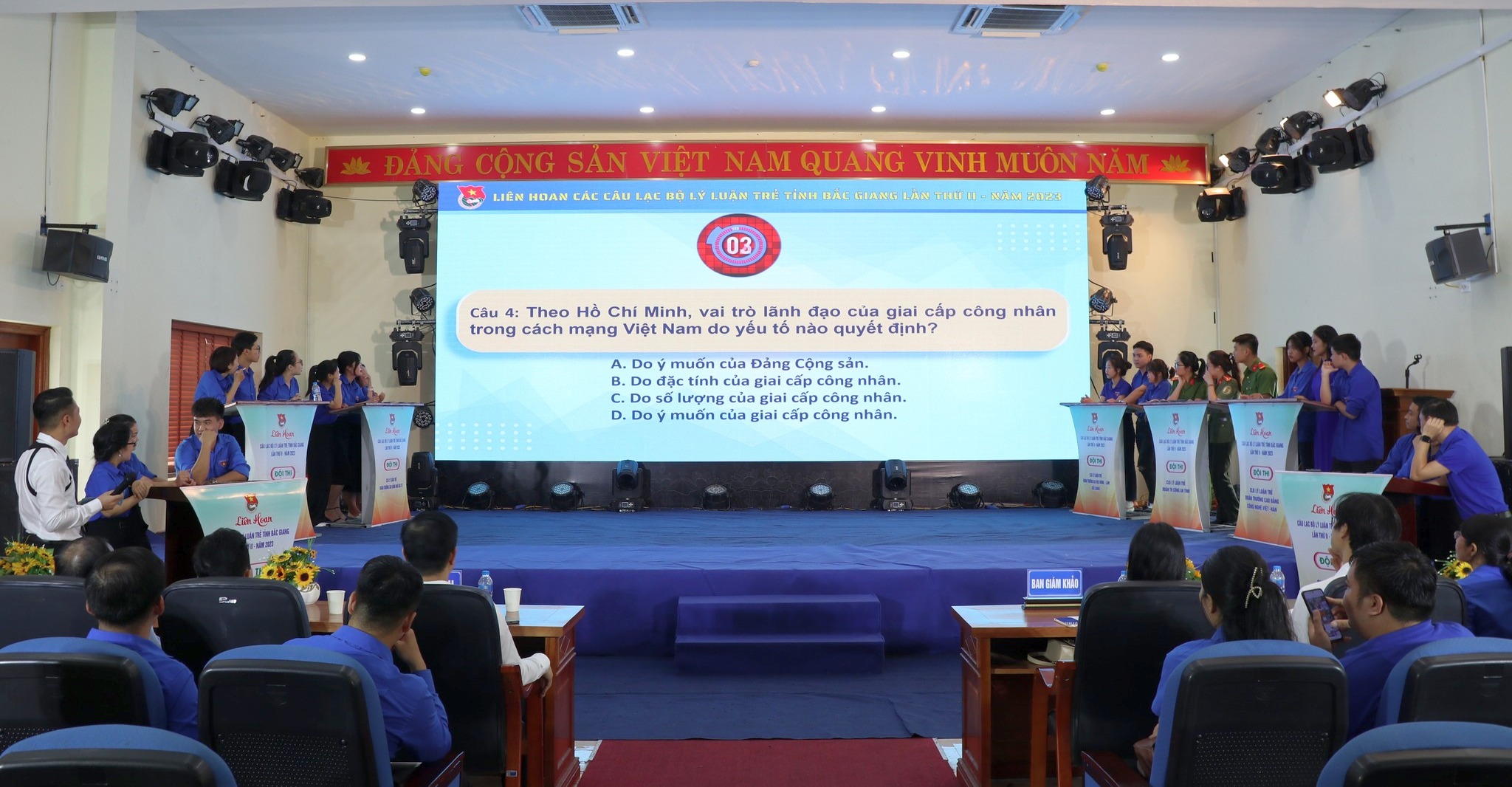 Tham dự Liên hoan có 07 đội thi đến từ CLB Lý luận trẻ các đơn vị: Đoàn Các cơ quan tỉnh, Đoàn TN Công an tỉnh, Đoàn Khối Doanh nghiệp tỉnh, Trường Đại học Nông - Lâm Bắc Giang, Trường Cao đẳng Ngô Gia Tự - Bắc Giang, Trường Cao đẳng Kỹ thuật công nghiệp, Trường Cao đẳng Công nghệ Việt - Hàn.