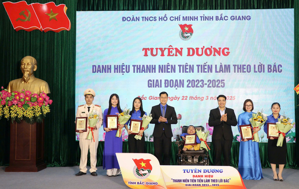 Dịp này, Tỉnh đoàn đã tổ chức tuyên dương 06 “Gương mặt trẻ tiêu biểu” tỉnh Bắc Giang năm 2024 và tuyên dương 06 “Thanh niên tiên tiến làm theo lời Bác” giai đoạn 2023-2025. Đây là những gương thanh niên điển hình, tiêu biểu có thành tích xuất sắc trong học tập, rèn luyện, nghiên cứu khoa học, lao động, sáng tạo, giữ gìn an ninh trật tự và có nhiều đóng góp cho cộng đồng, xã hội, xây dựng và bảo vệ Tổ quốc.
