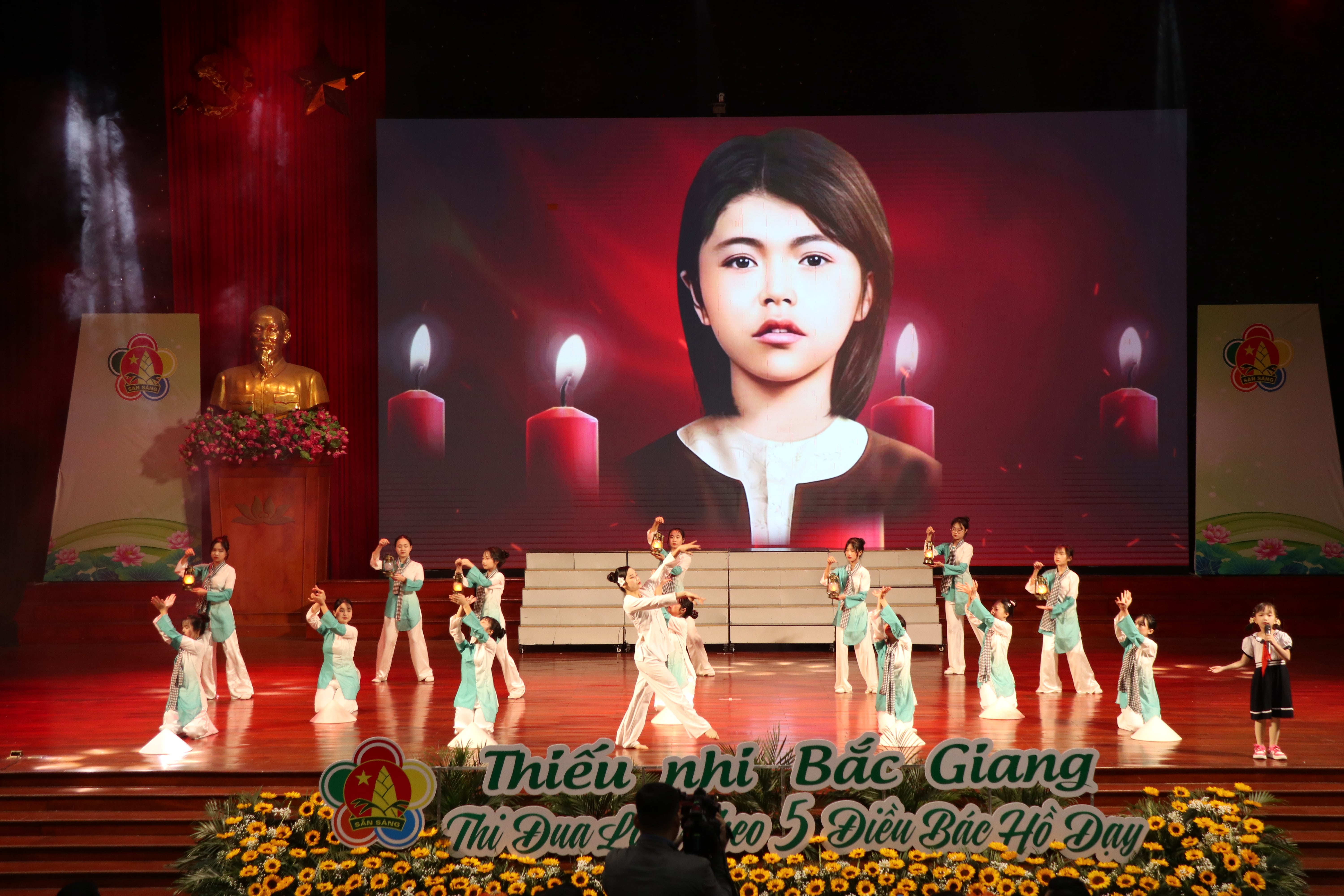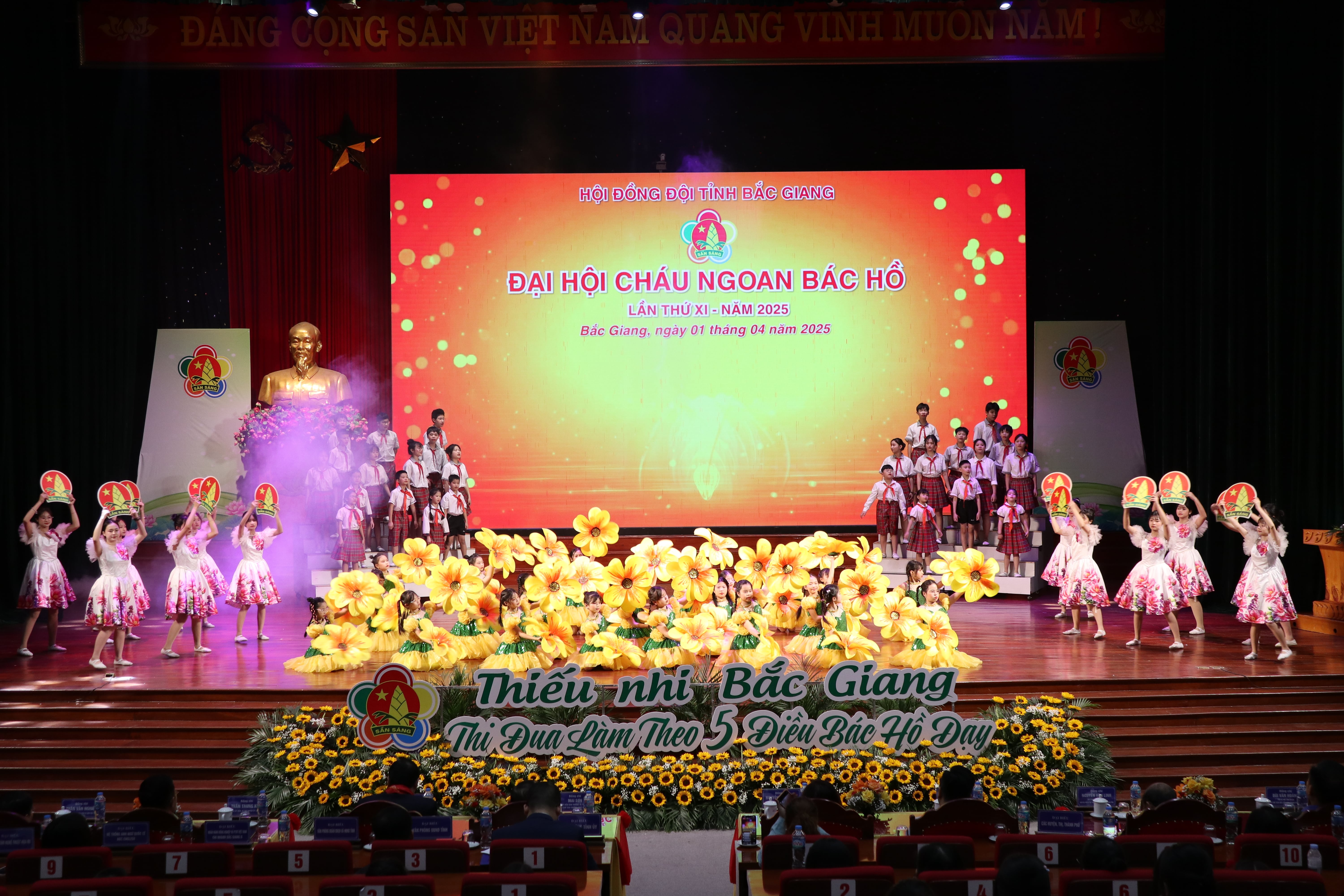 Tại đại hội, các đội viên, thiếu niên, nhi đồng đã báo công lên Bác Hồ kính yêu những kết quả mà thiếu nhi tỉnh Bắc Giang đạt được trong học tập, rèn luyện và tham gia phong trào “Thiếu nhi Bắc Giang thi đua làm theo 5 điều Bác Hồ dạy” giai đoạn 2020 - 2025 và quyết tâm thi đua làm theo 5 điều Bác Hồ dạy, phấn đấu hơn nữa để xứng đáng với danh hiệu Cháu ngoan Bác Hồ.