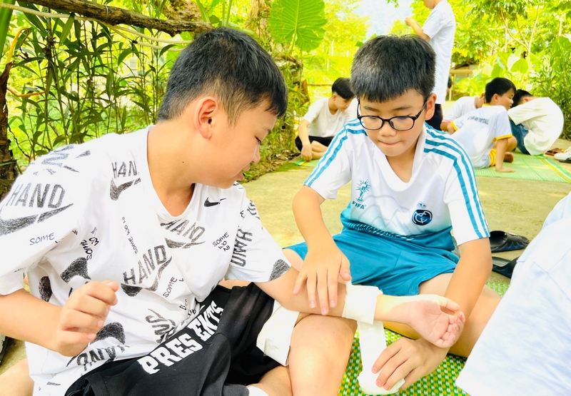 Các em đã cùng sinh hoạt tập trung và tham gia vào các hoạt động rèn luyện các kỹ năng sống có ích, các kỹ năng sơ cấp cứu, băng bó vết thương; phòng chống cháy nổ, thoát nạt khi gặp hỏa hoạn; phòng chống xâm hại và tự bảo vệ mình, cách nhận biết một số loại lá cây ứng dụng, rèn luyện sự tự tin, dũng cảm; xử lý tình huống và giải quyết tình huống;..