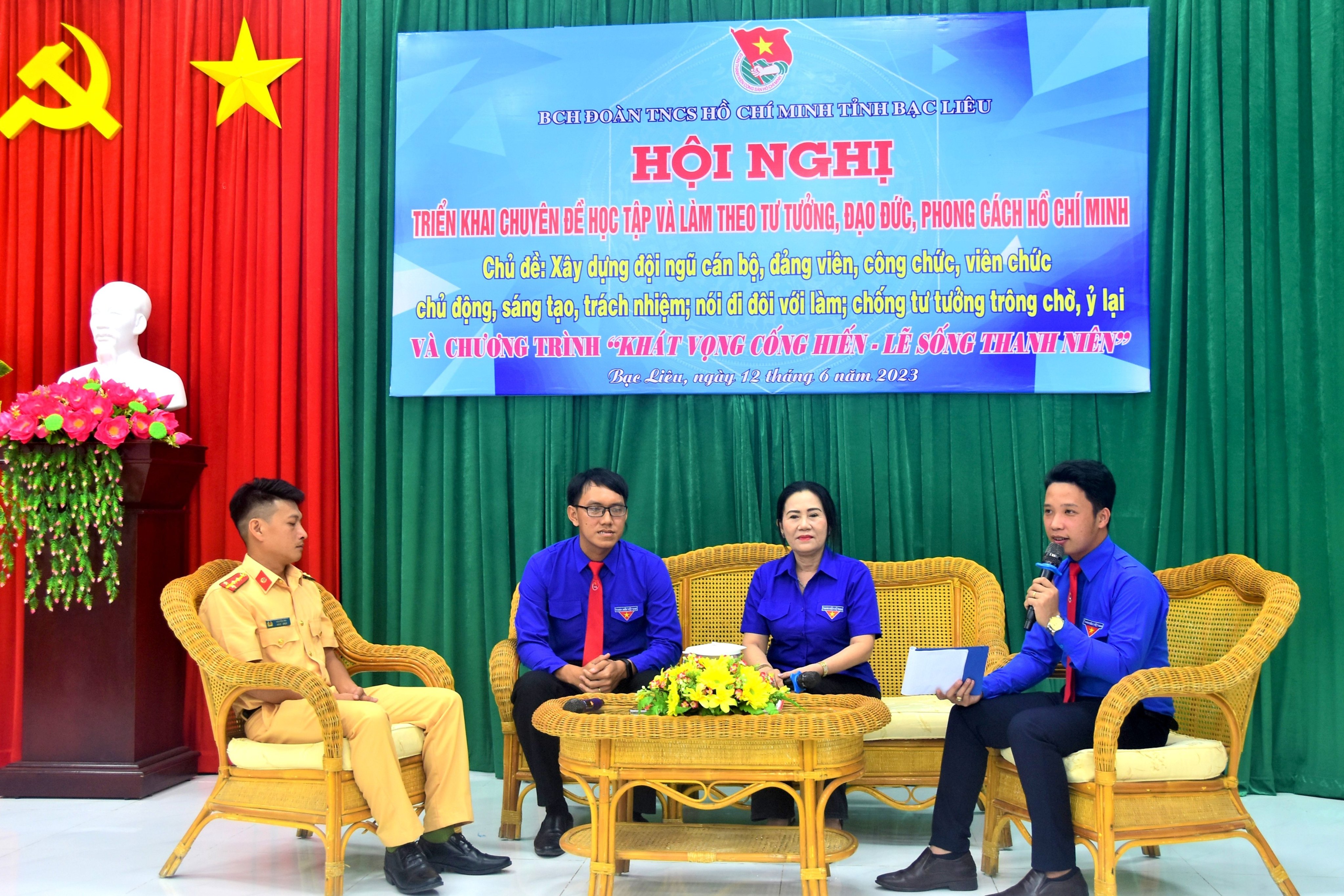 ĐTN: Ngày 12/6, Tỉnh đoàn Bạc Liêu tổ chức Hội nghị chuyên đề Học tập và làm theo tư tưởng, đạo đức, phong cách Hồ Chí Minh năm 2023 với chủ đề:“Xây dựng đội ngũ cán bộ, đảng viên, công chức, viên chức: Chủ động, sáng tạo, trách nhiệm; nói đi đôi với làm; chống tư tưởng trông chờ, ỷ lại” và chương trình “Khát vọng cống hiến, lẽ sống thanh niên”.