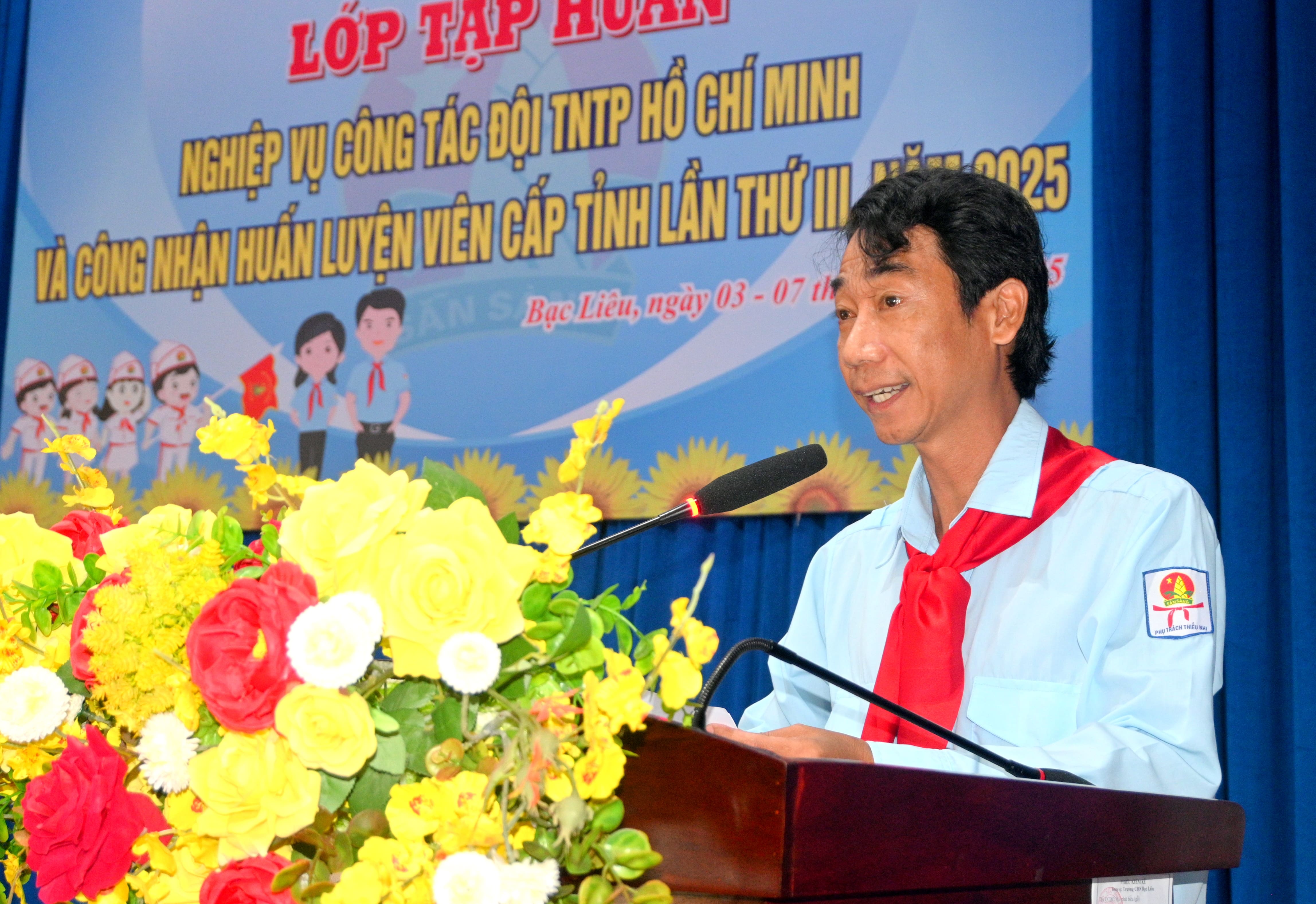 Phát biểu tại buổi lễ, đồng chí Trần Nguyễn Trường Giang, Phó Bí thư thường trực Tỉnh đoàn, Chủ tịch Hội đồng đội tỉnh đánh giá rất cao về tinh thần học tập của tất cả các học viên trong 05 ngày qua (03-07/6/2025); thấy được vai trò, trách nhiệm của Ban Tổ chức lớp, Ban Chỉ huy Liên đội tạm thời của lớp tập huấn và các đồng chí có nhiều kinh nghiệm trong công tác đội, các đồng chí đã tham gia tập huấn với tinh thần vừa học vừa hỗ trợ cùng Ban Tổ chức để chia sẻ những kỹ năng, kinh nghiệm trong công tác với các học viên chưa có nhiều kinh nghiệm trong công tác đội. Đồng thời, hy vọng chương trình tập huấn sẽ góp phần củng cố, bồi dưỡng kiến thức và nâng cao nghiệp vụ, kỹ năng công tác đội cho đội ngũ cán bộ phụ trách công tác đội trên địa bàn tỉnh trong thời gian tới.