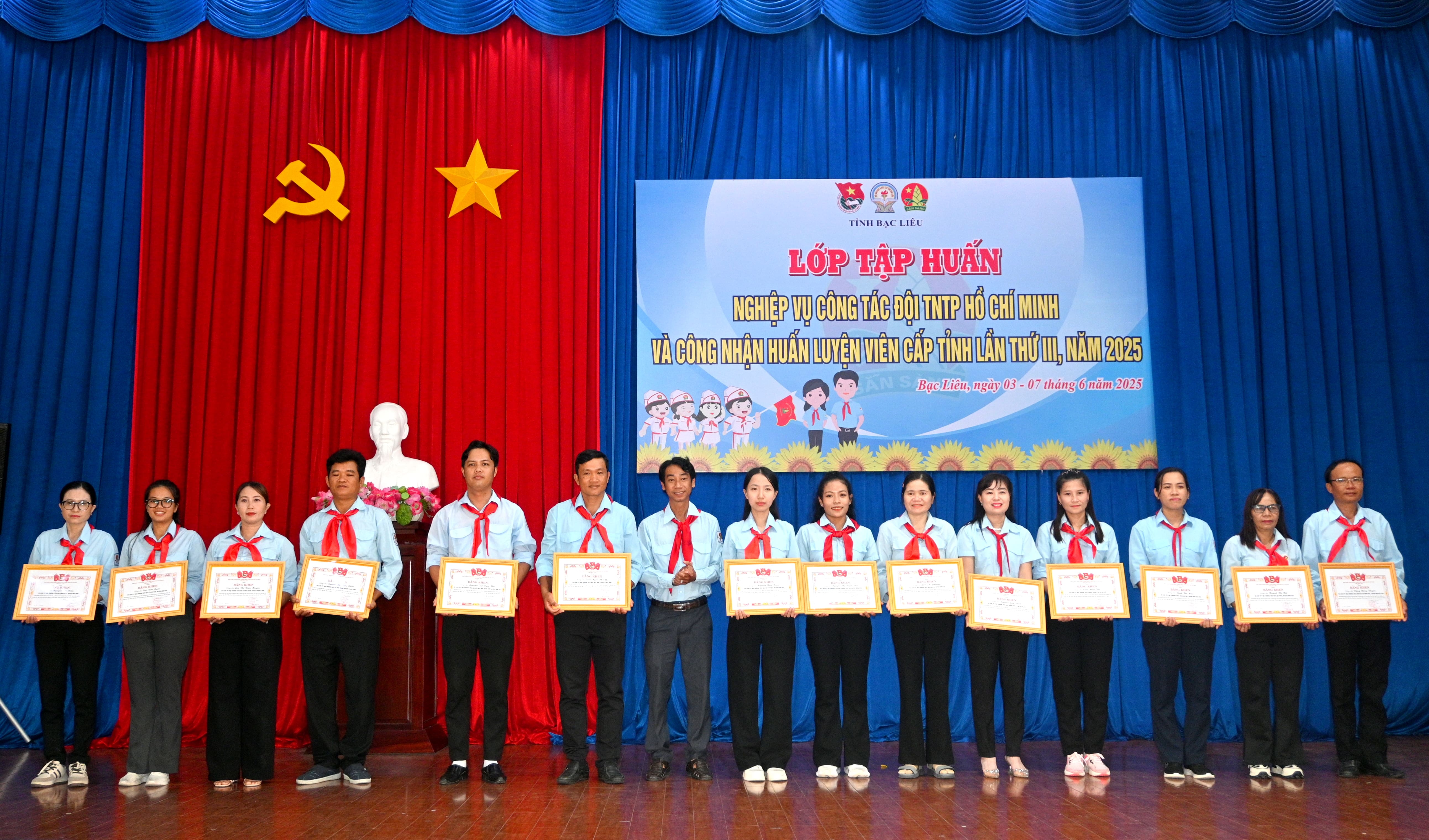 Dịp này, Ban Tổ chức đã tặng Bằng khen của Ban Chấp hành Tỉnh đoàn cho 14 cá nhân đã có thành tích xuất sắc trong chương trình tập huấn nghiệp vụ công tác Đội TNTP Hồ Chí Minh tỉnh Bạc Liêu năm 2025; ngoài ra, trao giấy chứng nhận Huấn luyện viên cấp tỉnh lần thứ III, năm 2025 cho 161 học viên đủ điều kiện.