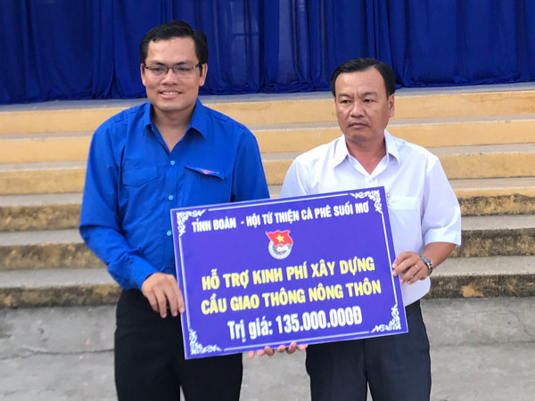 Đ/c Ngô Vũ Thăng – UVBCH TW Đoàn, Bí thư Tỉnh Đoàn trao bảng tượng trưng hỗ trợ kinh phí xây dựng cầu giao thông nông thôn