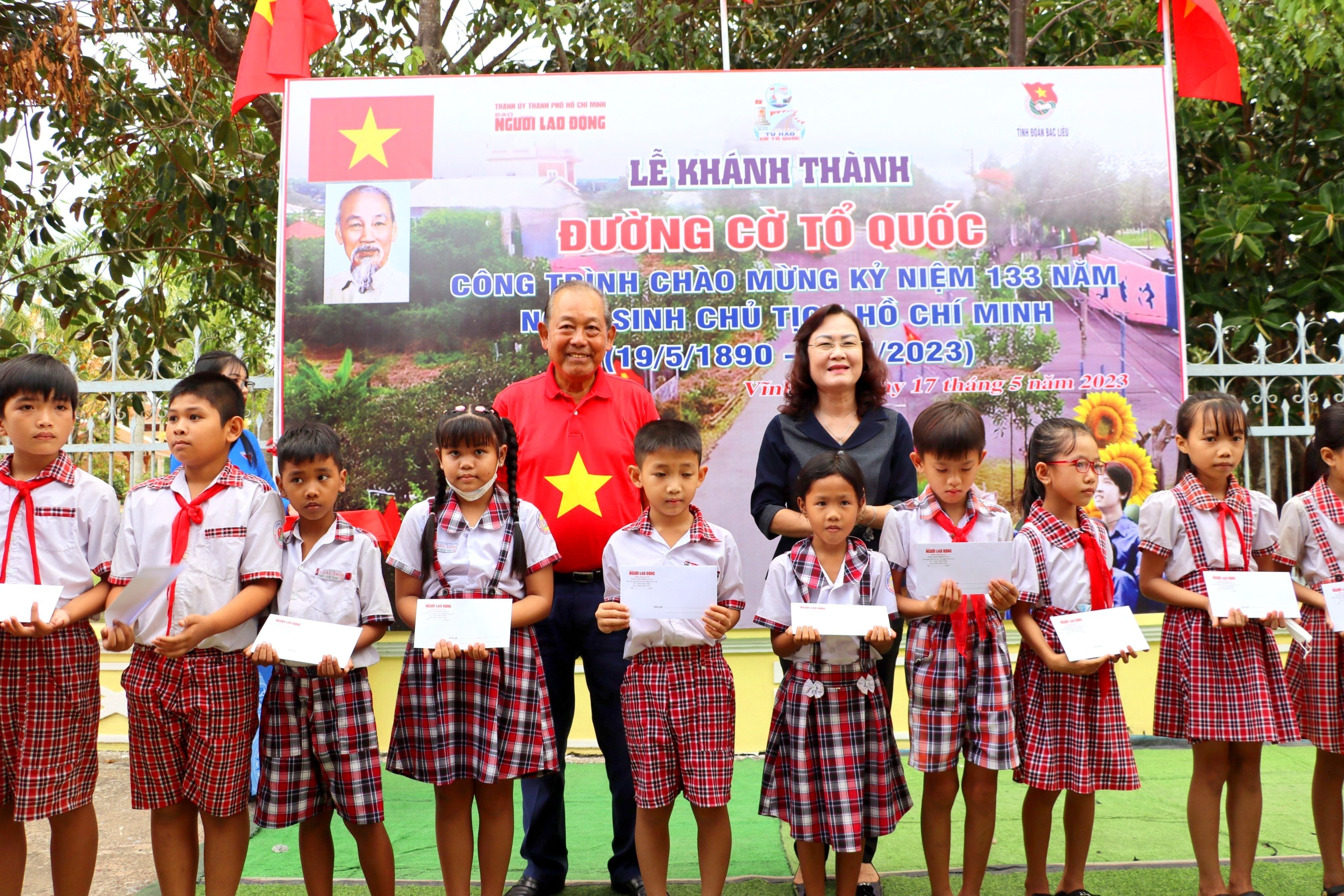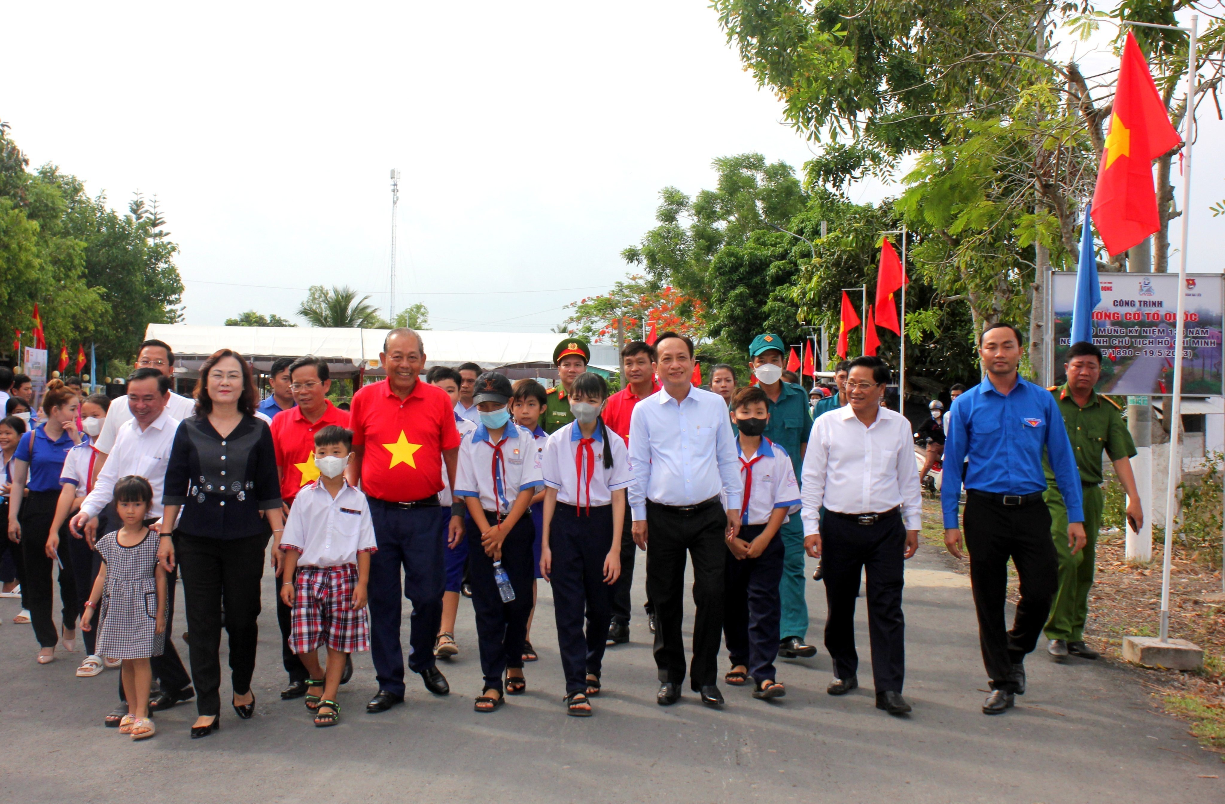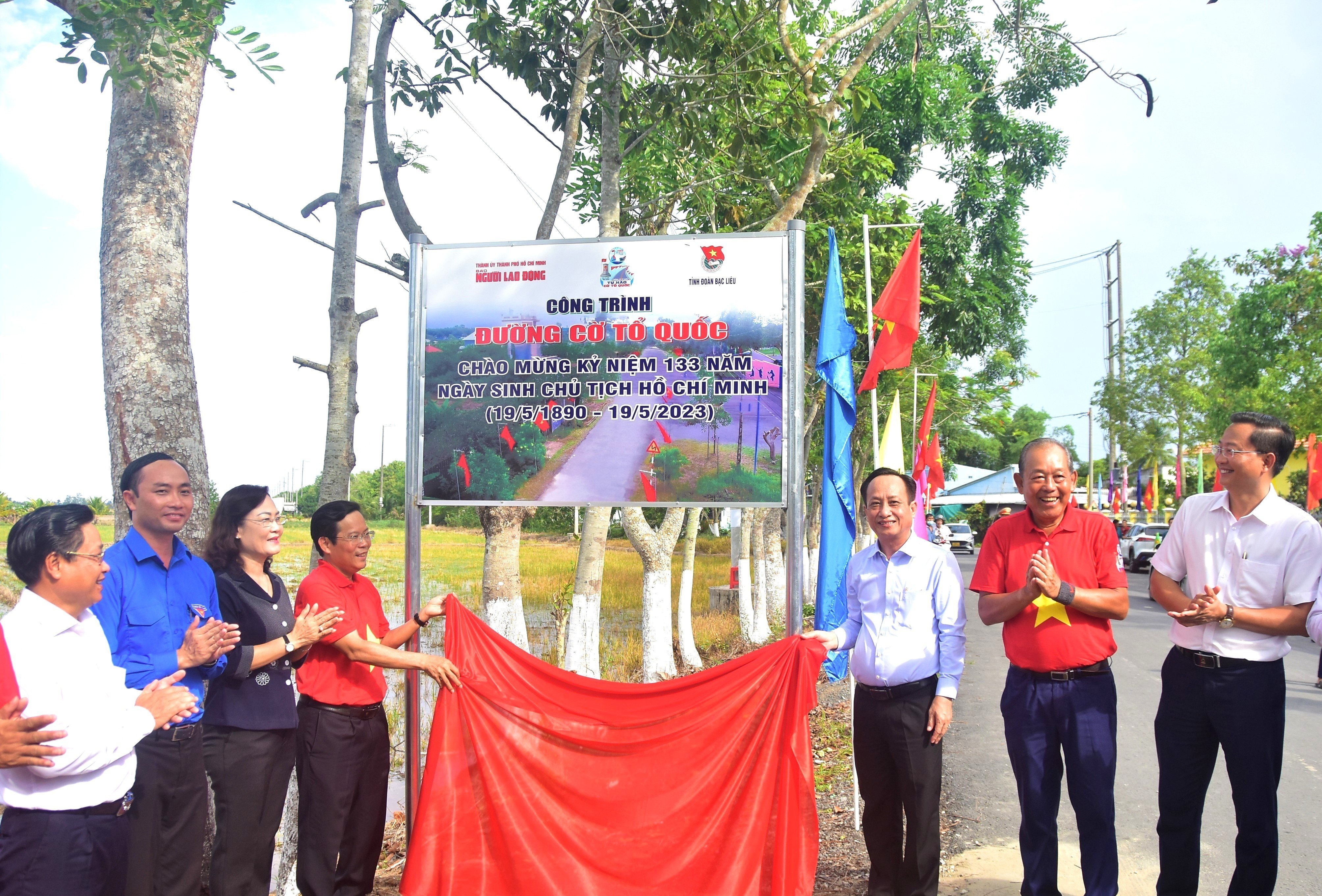 Tại chương trình, đồng chí Trương Hoà Bình - Nguyên Ủy viên Bộ Chính trị, nguyên Phó Thủ tướng Thường trực Chính phủ, Chủ tịch Danh dự chương trình “Tự hào cờ Tổ quốc”; đồng chí Lê Thị Ái Nam - Phó Bí thư Thường trực Tỉnh uỷ; đồng chí Phạm Văn Thiều - Phó Bí thư Tỉnh uỷ, Chủ tịch UBND tỉnh cùng các đồng chí lãnh đạo tỉnh đã thực hiện nghi thức khánh thành công trình “Đường cờ Tổ quốc”. Đây công trình thứ hai tại quê hương Bạc Liêu được Ban Thường vụ Tỉnh đoàn chọn thực hiện trên địa bàn huyện Vĩnh Lợi - Nơi có Di tích lịch sử quốc gia Đền thờ Chủ tịch Hồ Chí Minh. Công trình được thực hiện với chiều dài gần 09km, xây dựng với 600 lá cờ và trụ cột cờ trị giá trên 200 triệu đồng tuyến đường từ Cổng chào Đền thờ Bác (Quốc lộ 1A) đến Đền thờ Chủ tịch Hồ Chí Minh.