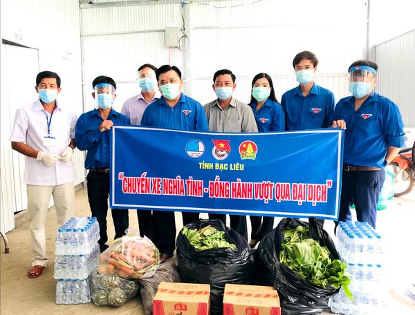 Đoàn đã đến thăm hỏi, động viên và trao tặng lương thực, thực phẩn và nhu yếu phẩm cho các bếp ăn tại các khu cách ly tập trung và chốt kiểm soát dịch trên địa bàn thành phố Bạc Liêu, huyện Hòa Bình và Hồng Dân. Trong chuyến hành trình đầu tiên, đoàn đã trao tặng: 150kg rau cải thìa, 144 chai nước tương, 30 lốc nước suối và 100kg các loại trái cây, củ (bí đỏ, khoai ngọt, khoai tây, cà rốt...).