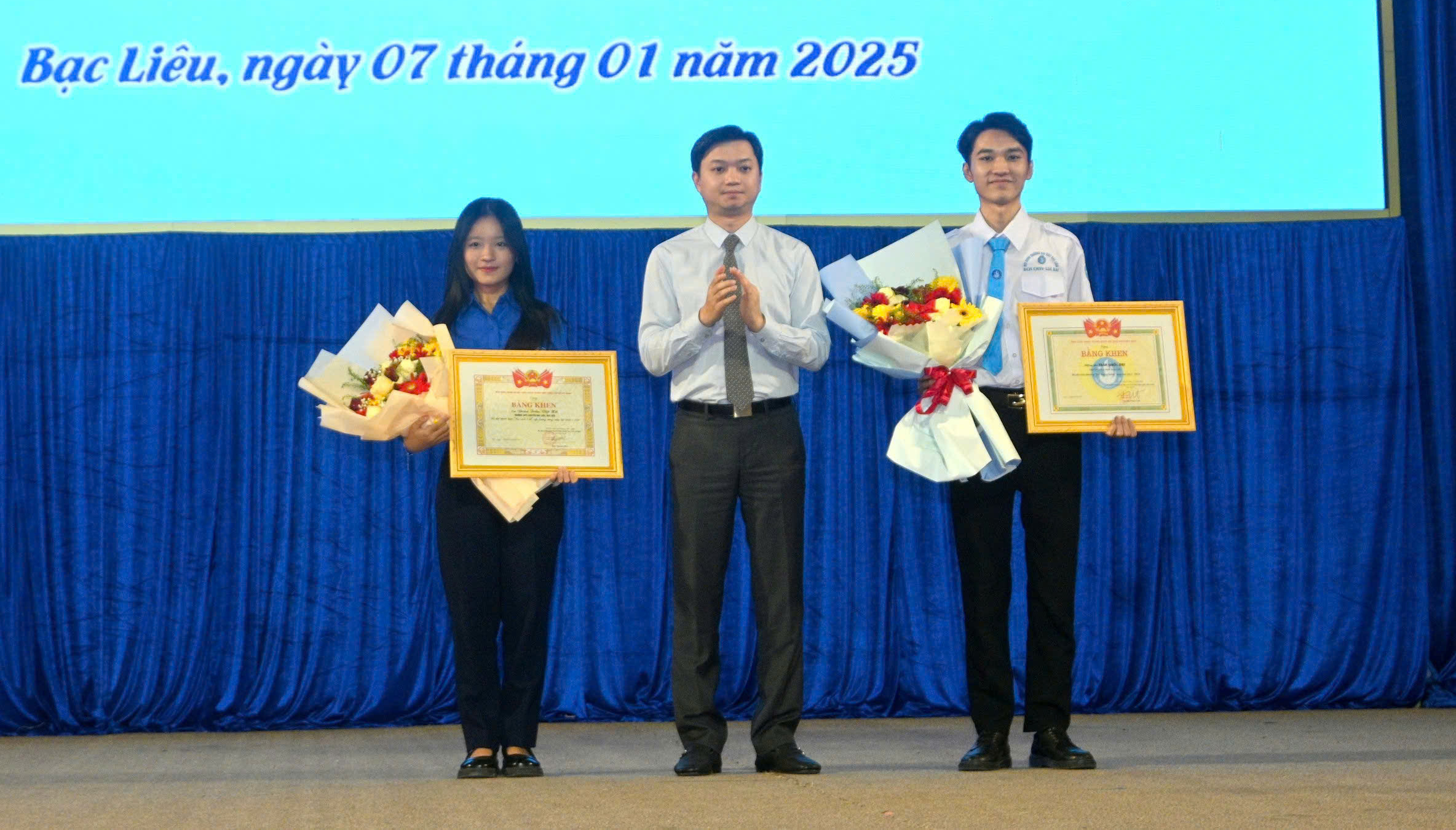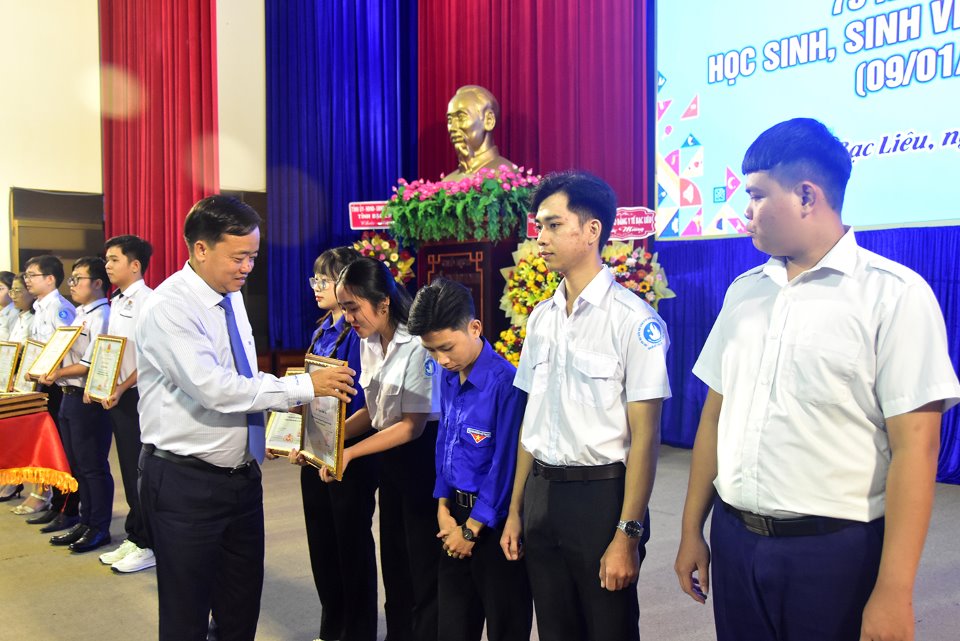 Dịp này, đồng chí Nguyễn Minh Triết, Bí thư Trung ương Đoàn, Chủ tịch Trung ương Hội sinh viên Việt Nam trao bằng khen đạt danh hiệu “Học sinh 3 tốt” cấp Trung ương cho bạn Đoàn Trần Việt Hà, học sinh Trường Trung học phổ thông Chuyên Bạc Liêu và trao 01 Giải thưởng Sao tháng Giêng cho bạn Trần Quốc Duy, sinh viên Trường Đại học Bạc Liêu. Ngoài ra, UBND tỉnh trao khen thưởng 03 tập thể và 07 cá nhân đạt thành tích tiêu biểu trong công tác Đoàn, Hội và phong trào Học sinh sinh viên tỉnh Bạc Liêu trong năm 2023 - 2024.