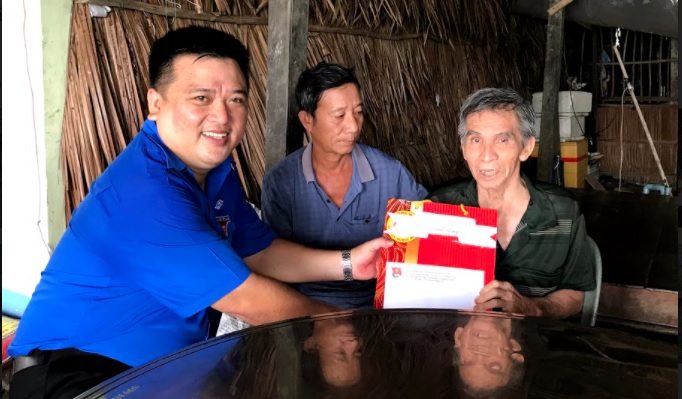 Đồng chí Nguyễn Hoàng Thoại - Bí Thư Tỉnh đoàn tặng quà cho gia đình chính sách