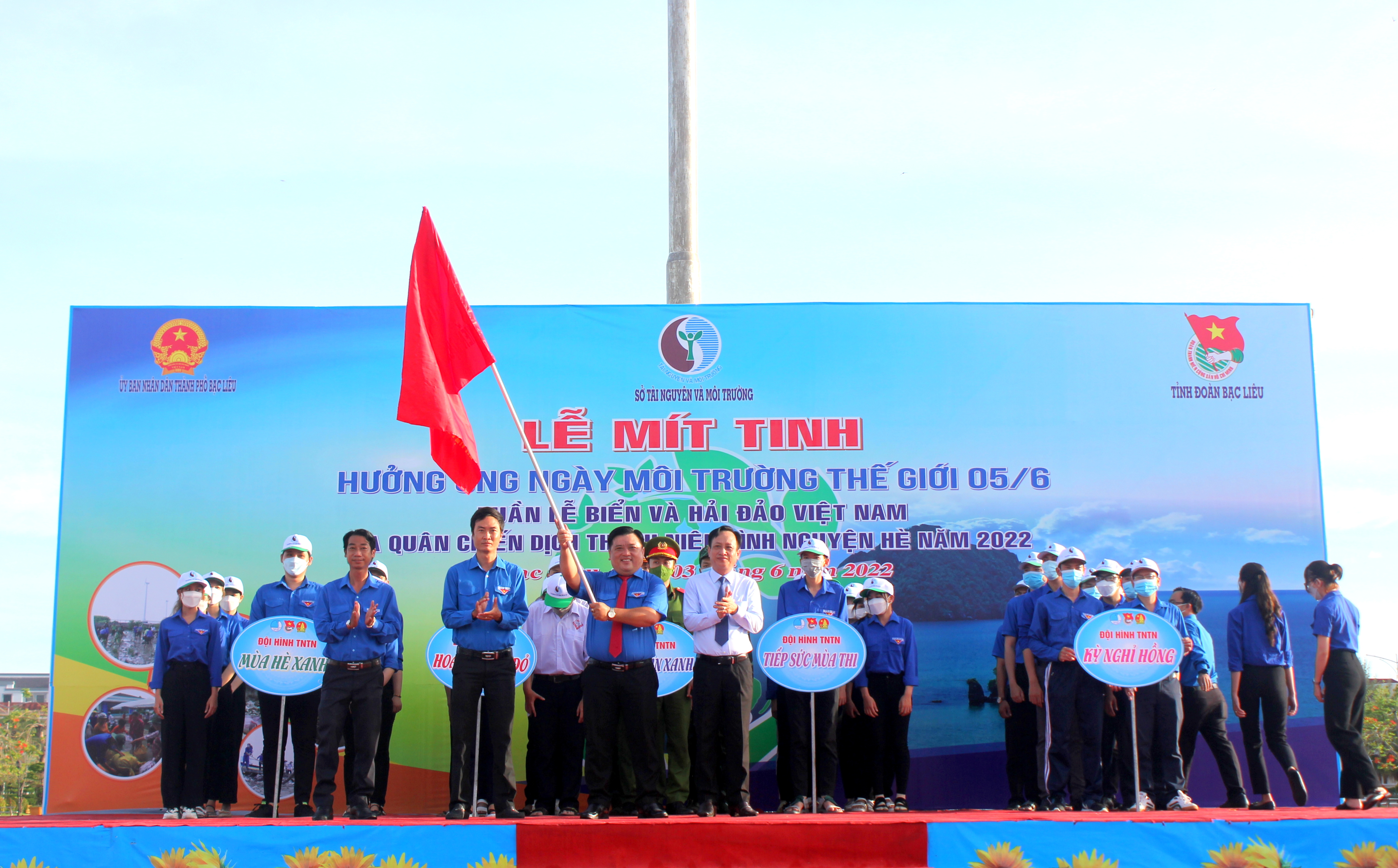 Tại buổi lễ, đồng chí Phạm Văn Thiều – Phó Bí thư Tỉnh ủy, Chủ tịch UBND tỉnh đã trao cờ lệnh xuất quân Chiến dịch Thanh niên tình nguyện Hè năm 2022 cho Ban Thường vụ Tỉnh đoàn; ra mắt 05 đội hình thanh niên tình nguyện “Tiếp sức mùa thi”, đội hình thanh niên tình nguyện “Mùa hè xanh”, đội hình thanh niên tình nguyện “Hoa Phượng đỏ”, đội hình thanh niên tình nguyện “Kỳ nghỉ hồng”, đội hình thanh niên tình nguyện “Hành quân xanh”; ngoài ra, ký bản cam kết chống rác thải nhựa giữa Sở Tài nguyên và Môi trường với Siêu thị Co.opmart Bạc Liêu; Sở Tài nguyên và Môi trường trao tặng 20 thùng đựng rác loại 240 lít cho UBND xã Vĩnh Trạch Đông (thành phố Bạc Liêu).