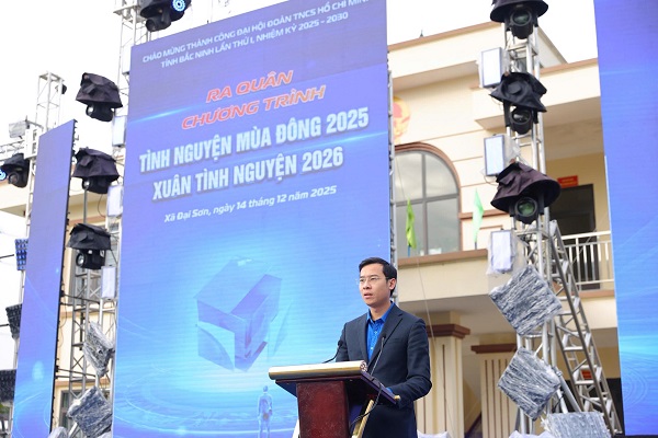 Phát biểu khai mạc chương trình, đồng chí Hà Thái Sơn, Phó Bí thư Tỉnh đoàn, Chủ tịch Hội LHTN Việt Nam tỉnh Bắc Ninh nhấn mạnh: Mục tiêu cao nhất của chương trình Tình nguyện mùa Đông 2025, Xuân tình nguyện 2026 là các cấp bộ Đoàn, Hội trong tỉnh tập trung cao độ, dành toàn bộ nguồn lực ưu tiên cho các xã khó khăn trong tỉnh, chung sức giúp đỡ thanh thiếu nhi và đồng bào khó khăn bị ảnh hưởng bởi thiên tai, bão lũ, góp phần đảm bảo an sinh xã hội.