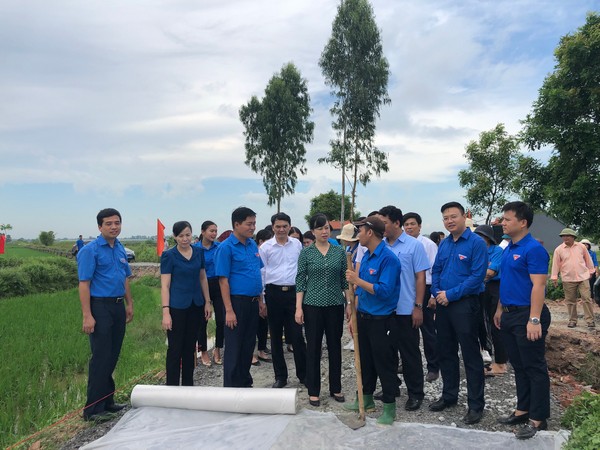 Lãnh đạo Tỉnh ủy, Tỉnh đoàn Bắc Ninh, Đảng ủy khối CCQ và DN tỉnh, Huyện ủy Lương Tài đã đến thăm và động viên các đội hình tình nguyện tham gia làm đường bê tông.