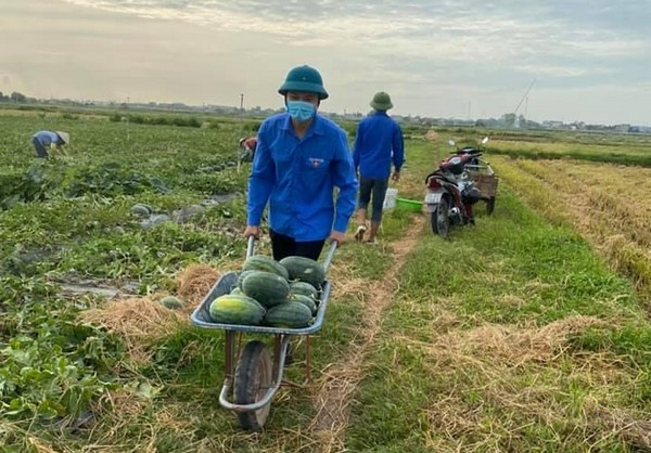ĐVTN xã Trừng Xá, huyện Lương Tài thu hoạch dưa hấu giúp nhân dân