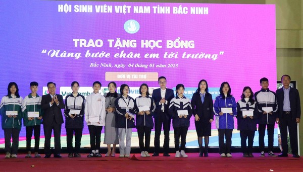 Dịp này, Hội Sinh viên tỉnh phối hợp với các doanh nghiệp trên địa bàn tỉnh trao 10 học bổng Nâng bước chân em tới trường cho 10 em học sinh vượt khó vươn lên, góp phần hỗ trợ, động viên em học sinh khó khăn trên địa bàn tỉnh tiếp tục ước mơ chinh phục con đường học vấn./.