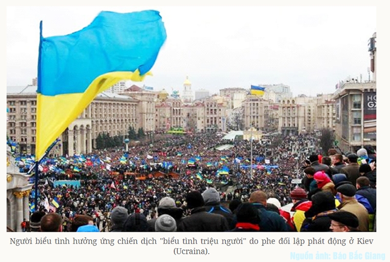 Còn ở Ukraina khởi điểm từ “Cách mạng Cam” diễn ra vào năm 2004. Trước những cáo buộc về gian lận trong cuộc bầu cử tổng thống, hàng trăm nghìn người ủng hộ ông Vikto Yushchenko đã dùng màu cam - biểu tượng tranh cử của ông - xuống đường phản đối kết quả bầu cử. Sau hai tuần tụ tập biểu tình tại Quảng trường Độc lập, những người ủng hộ ông Yushchenko đã buộc Tối cao pháp viện Ukraina hủy bỏ kết quả bầu cử và ra lệnh tổ chức một cuộc bầu cử mới. Và trong cuộc bầu cử đó, ông Vikto Yushchenko, một nhân vật thân phương Tây, đã đánh bại ông Viktor Yanukovych, ứng viên được Nga ủng hộ và là người được tuyên bố thắng cử trong cuộc bầu cử lần trước.
