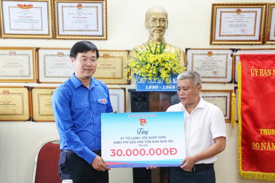 Bí thư thứ nhất T.Ư Đoàn Lê Quốc Phong tặng quà cho Trung tâm dưỡng lão Thị Nghè