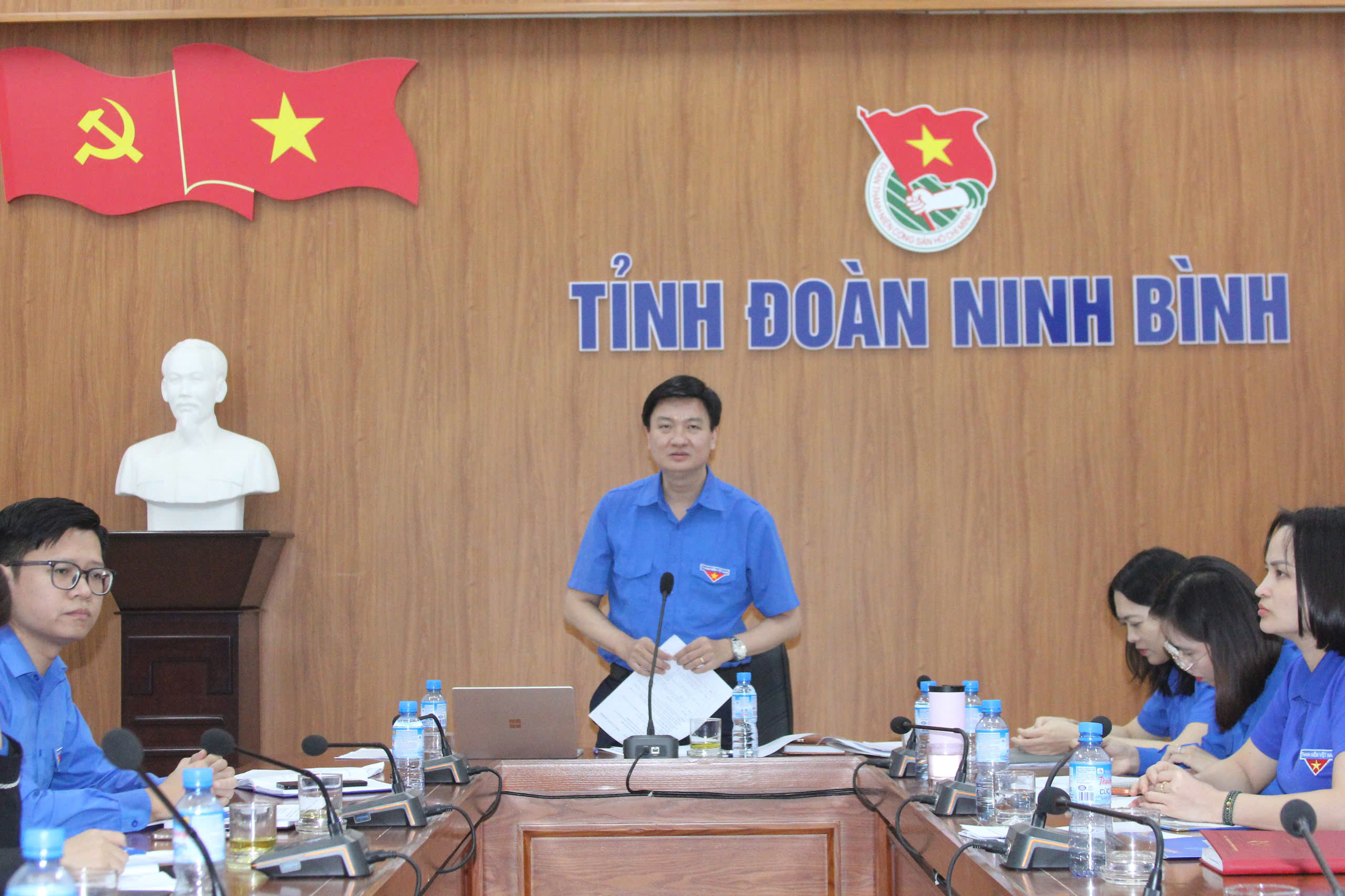 Tại Hội nghị, đồng chí Bí thư Tỉnh đoàn đã báo cáo kết quả việc triển khai thực hiện Nghị quyết đại hội Đoàn toàn quốc lần thứ XII và Nghị quyết Đại hội Đoàn các cấp giai đoạn 2022 - 2025; báo cáo tình hình hoạt động của Đoàn TNCS Hồ Chí Minh tỉnh Ninh Bình sau khi thực hiện mô hình chính quyền địa phương 2 cấp và công tác chuẩn bị Đại hội Đoàn cấp tỉnh gắn với tổng kết các chương trình, nghị quyết trong nhiệm kỳ. Đồng thời đề xuất những khó khăn, vướng mắc trong quá trình thực hiện nhiệm vụ của Tỉnh đoàn thời gian qua.