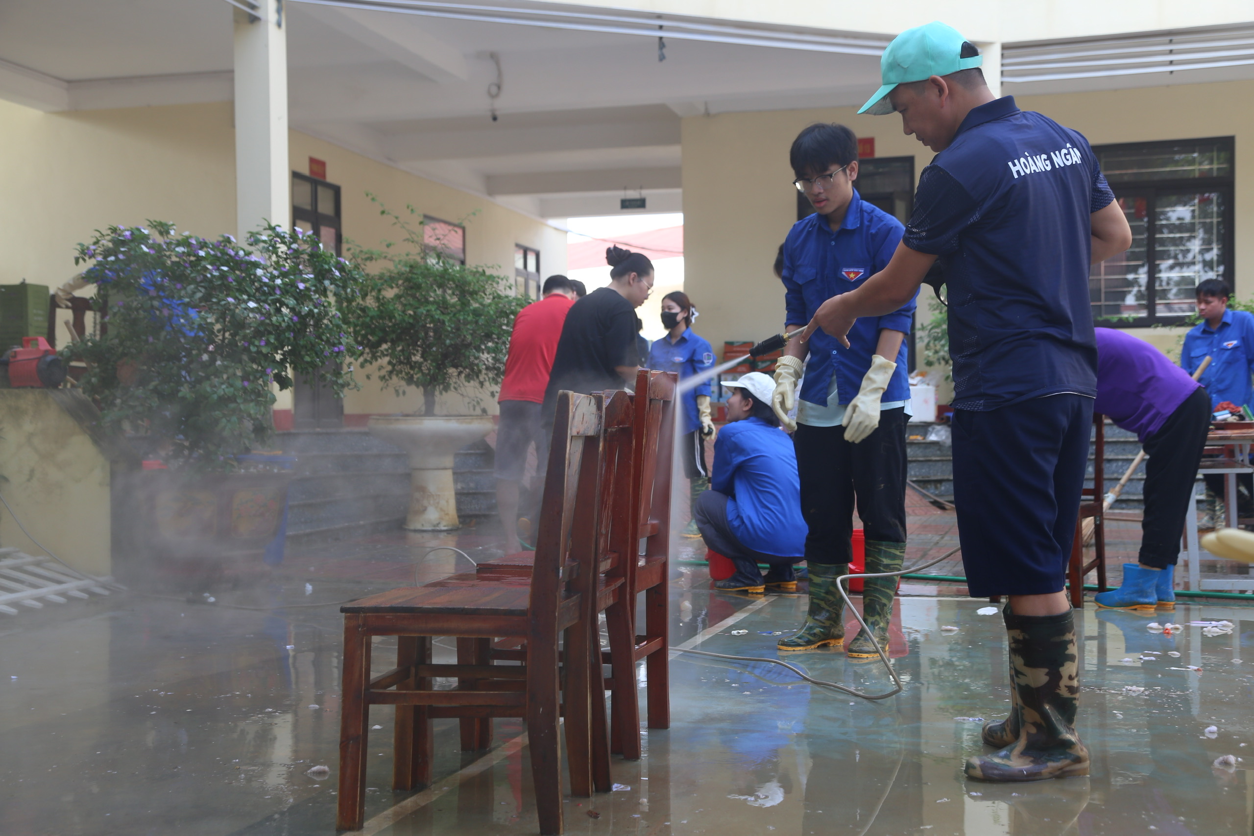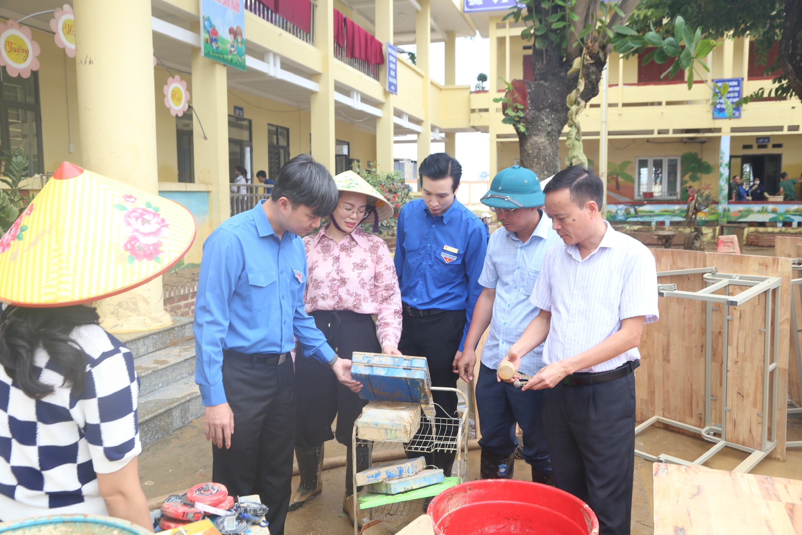 Đoàn công tác cũng đã thăm hỏi, động viên và trao quà cho các đội hình thanh niên tình nguyện đang trực tiếp hỗ trợ bà con nhân dân khắc phục hậu quả bão lũ - những đoàn viên, sinh viên tiêu biểu đang lan tỏa tinh thần “đâu cần thanh niên có, đâu khó có thanh niên”.