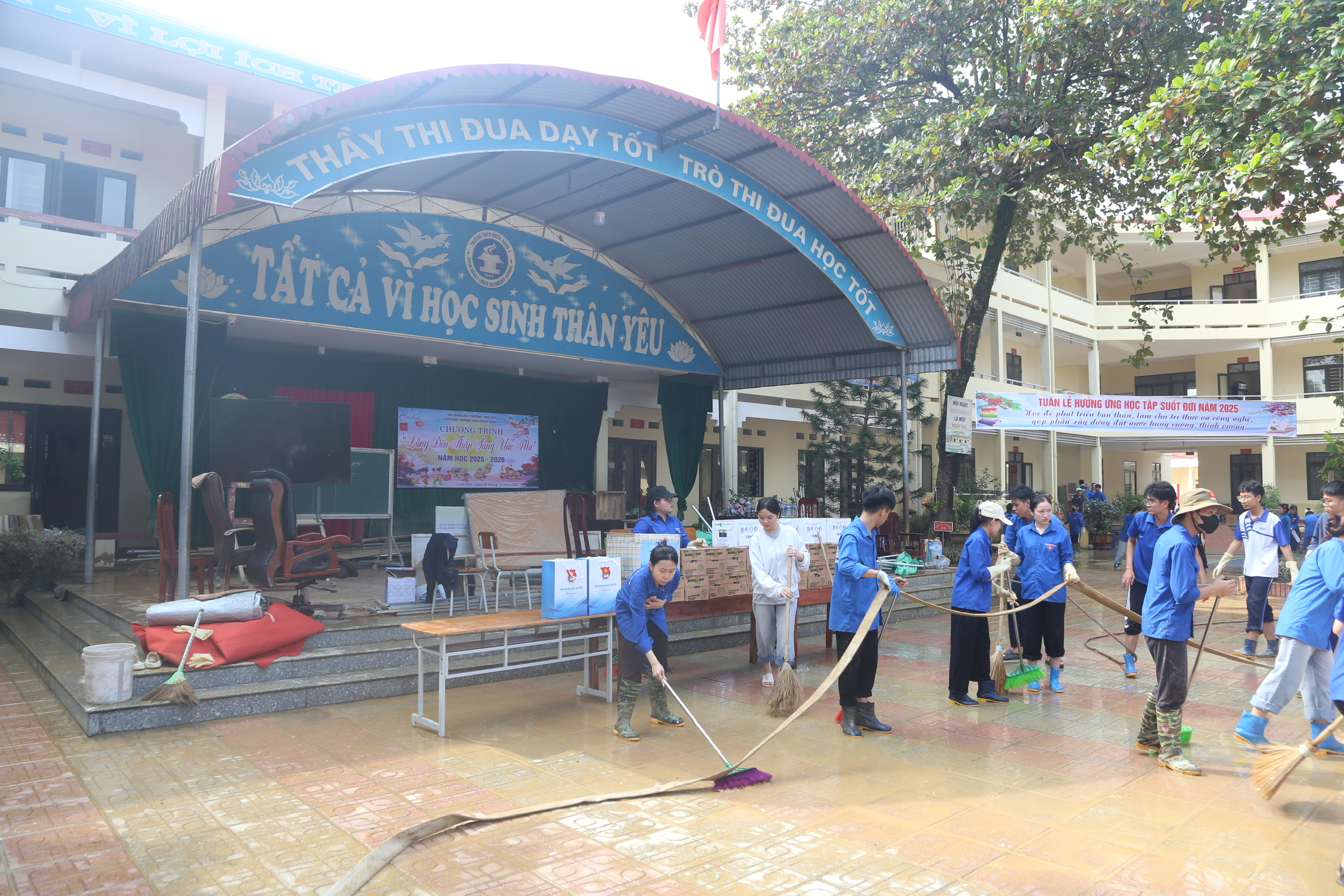 Tại Trường THCS Chùa Hang 1 (phường Linh Sơn) và Trường Tiểu học Quang Vinh (phường Quan Triều), đoàn công tác đã trao nhiều phần quà thiết thực và ý nghĩa, góp phần chia sẻ khó khăn, hỗ trợ khắc phục hậu quả mưa lũ: