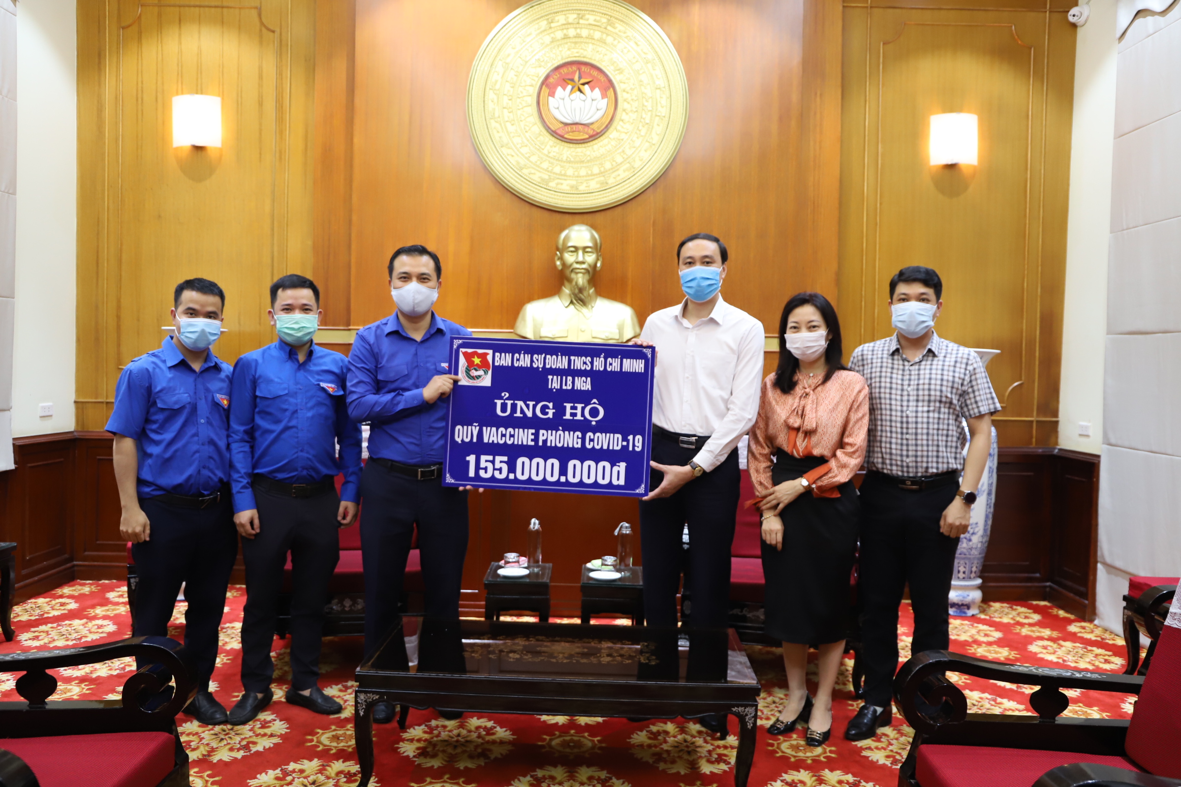 Được sự phân công của Ban Bí thư Trung ương Đoàn, sáng ngày 29/6, đồng chí Nguyễn Hải Minh, Ủy viên Ban Thường vụ, Trưởng Ban Quốc tế Trung ương Đoàn, Phó Chủ tịch Trung ương Hội LHTN Việt Nam trao số tiền 155 triệu đồng của tập thể đoàn viên, thanh niên Ban Cán sự Đoàn tại Liên bang Nga ủng hộ “Quỹ vắc-xin phòng chống dịch COVID-19” cho Ủy ban Trung ương Mặt Trận Tổ quốc Việt Nam.