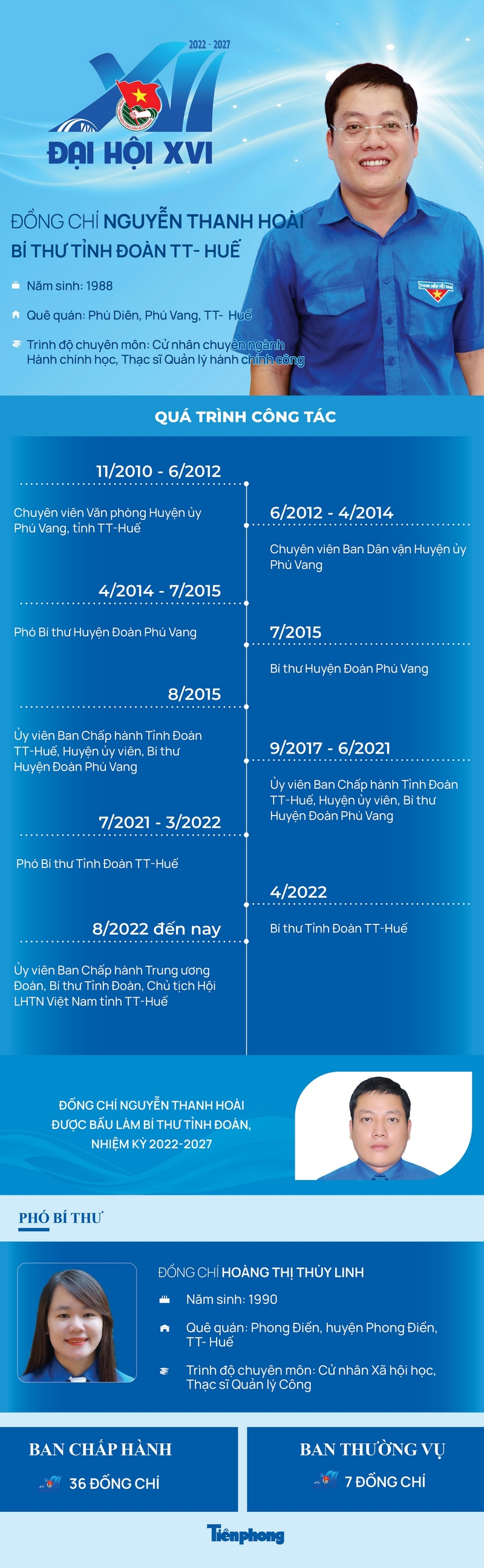 Đại hội Đại biểu Đoàn TNCS Hồ Chí Minh tỉnh Thừa Thiên Huế lần thứ XVI, nhiệm kỳ 2022 - 2027 đã bầu Ban Chấp hành Tỉnh đoán khóa XVI gồm 36 đồng chí. Tại hội nghị lần thứ nhất Ban Chấp hành Tỉnh Đoàn TT-Huế khóa XVI, đồng chí Nguyễn Thanh Hoài tiếp tục được tín nhiệm giữ chức vụ Bí thư Tỉnh Đoàn Thừa Thiên Huế khóa mới.