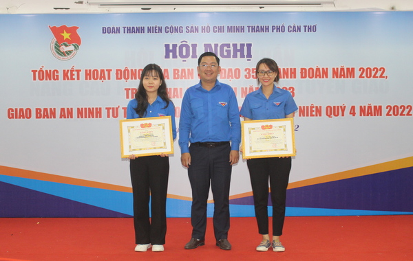 Dịp này, Thành đoàn trao tặng bằng khen cho 10 tập thể và 04 cá nhân có thành tích tiêu biểu xuất sắc trong thực hiện Nghị quyết số 35-NQ/TW ngày 22/10/2018 của Bộ Chính trị về "Tăng cường bảo vệ nền tảng tư tưởng của Đảng, đấu tranh phản bác các quan điểm sai trái, thù địch trong tình hình mới” năm 2022./.