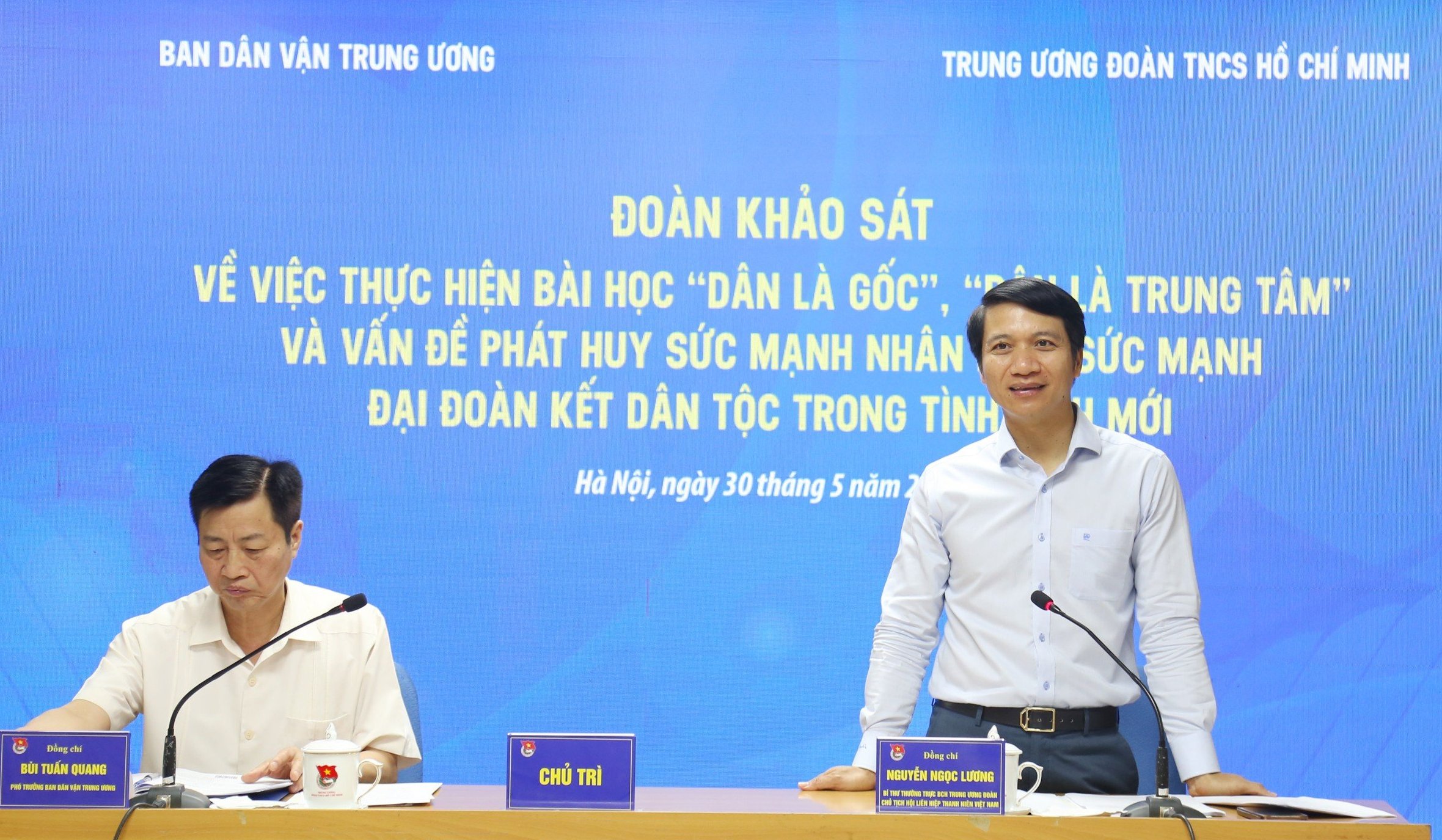 Phát biểu tại buổi làm việc, đồng chí Nguyễn Ngọc Lương cho rằng việc khảo sát có ý nghĩa rất quan trọng, không chỉ có ý nghĩa với Ban Dân vận T.Ư, mà qua những kết quả được nghiên cứu, sẽ giúp cho các tổ chức thành viên của Mặt trận Tổ quốc Việt Nam, trong đó có T.Ư Đoàn, sẽ có những giải pháp triển khai mới về công tác đoàn kết, tập hợp và phát huy thanh niên trong thực hiện bài học "Dân là gốc", "Dân là trung tâm"…