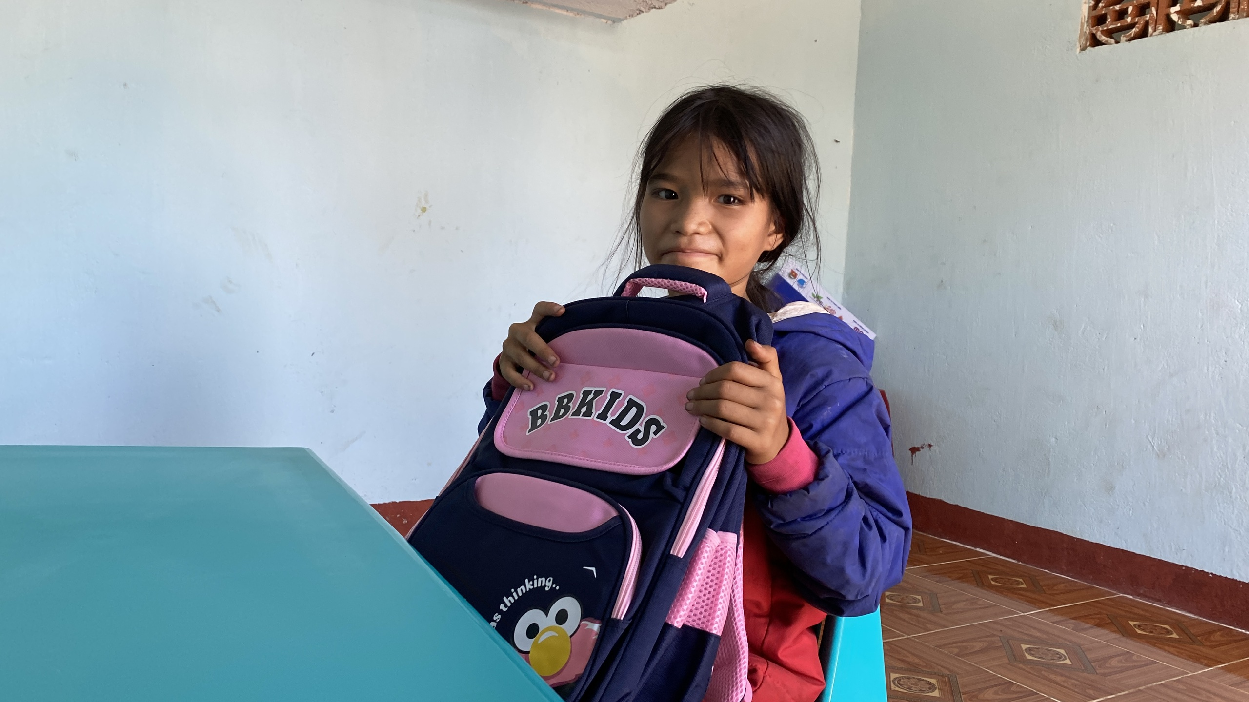 Tại ngay chính trên nền nhà cũ, các nhà trợ đã xây tặng gia đình em căn nhà cấp 4 có diện tích 40m2 mái tôn, nền lát gạch hoa, gồm 1 phòng khách và 2 phòng ngủ, nhà vệ sinh. “Ngôi nhà hạnh phúc” dành cho gia đình em được xây dựng với kinh phí 80 triệu đồng.