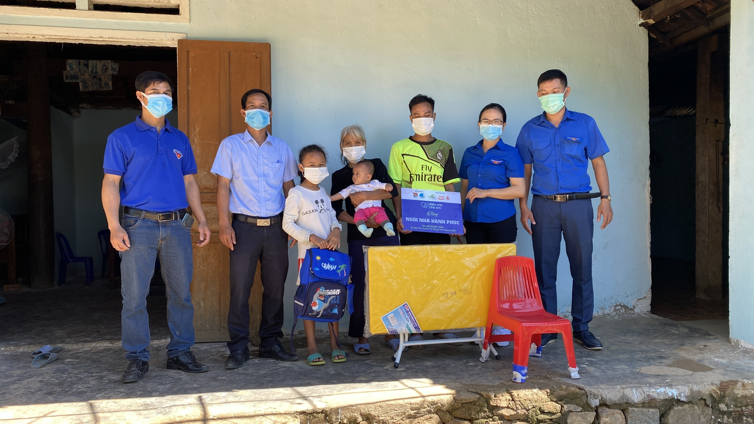 5 học sinh mồ côi có hoàn cảnh khó khăn gồm em Hồ Thị Chúc (lớp 5A, Trường Tiểu học Số 2 Trà Phong), Hồ Ngọc Hân (lớp 2A, Trường PTDTBT TH & THCS Sơn Trà) và Hồ Văn Trường (lớp 7, Trường PTDTBT THCS Số 1 Hương Trà) huyện Trà Bồng. Em Đinh Huy, sinh 2009, học sinh lớp 6A, Trường THCS Sơn Linh và em Đinh Thị Mỹ Diễm (lớp 6F, Trường THCS thị trấn Di Lăng) ở huyện Sơn Hà được Tỉnh đoàn, Hội Liên hiệp Thanh niên Việt Nam tỉnh Quảng Ngãi và Trung tâm tình nguyện Quốc gia Trung ương Đoàn chọn trao 5 ngôi nhà hạnh phúc tổng trị giá 360 triệu đồng trong khuôn khổ chương trình "Điều ước cho em" do Trung ương Đoàn phát động đầu tháng 4 vừa qua. Tại buổi bàn giao, Tỉnh đoàn, Hội LHTN Việt Nam tỉnh tặng mỗi em một món quà trị giá 700 nghìn đồng.