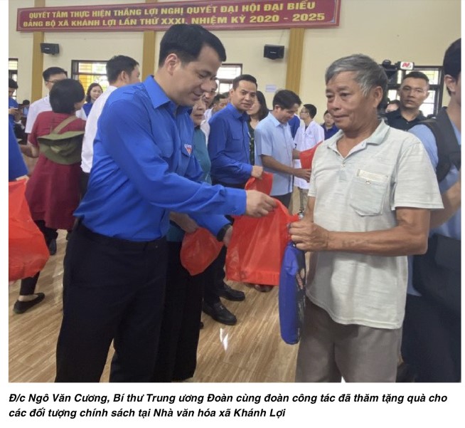 Ngày 23/7, tại Ninh Bình, Đoàn công tác của Trung ương Đoàn do đồng chí Ngô Văn Cương - Bí thư Trung ương Đoàn, Chủ nhiệm UBKT Trung ương Đoàn làm Trưởng đoàn đã kiểm tra công tác triển khai Chiến dịch Thanh niên tình nguyện Hè năm 2023 tại huyện Yên Khánh, tỉnh Ninh Bình. Trong khuôn khổ chương trình, đoàn công tác đã thăm và tặng quà cho các đối tượng chính sách tại xã Khánh Lợi, huyện Yên Khánh, tỉnh Ninh Bình.
