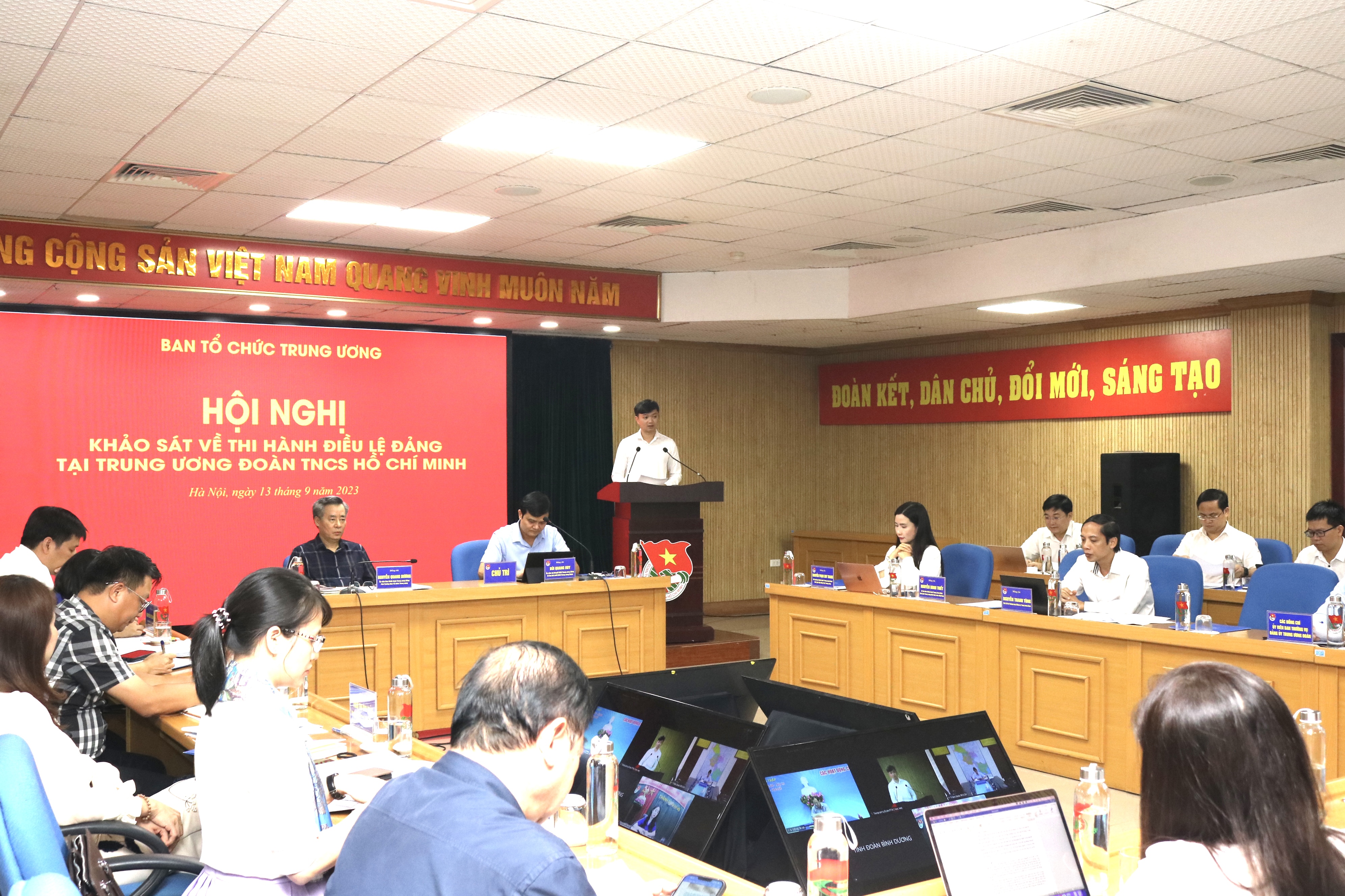 Báo cáo tại buổi làm việc, đồng chí Nguyễn Minh Triết, Bí thư Trung ương Đoàn cho biết: Đảng bộ Trung ương Đoàn là Đảng bộ cấp trên cơ sở trực thuộc Đảng bộ Khối các cơ quan Trung ương. Hiện nay, Đảng bộ Trung ương Đoàn TNCS Hồ Chí Minh có 906 đảng viên, sinh hoạt tại 09 Đảng bộ cơ sở, 05 chi bộ cơ sở, 21 chi bộ trực thuộc Đảng bộ Trung ương Đoàn và 56 chi bộ trực thuộc các Đảng bộ cơ sở.