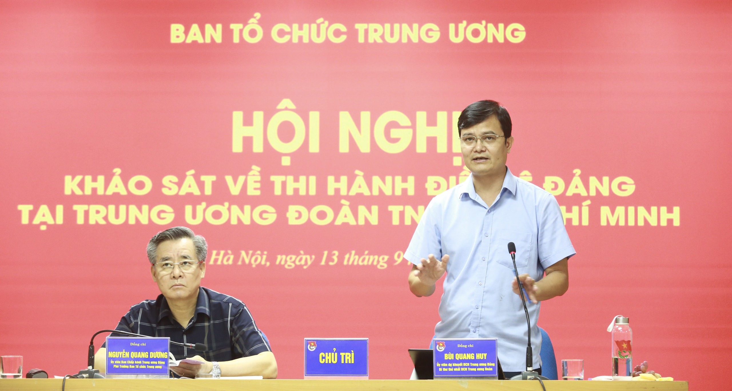 Đồng chí Nguyễn Quang Dương, Ủy viên TƯ Đảng, Phó Trưởng ban Tổ chức Trung ương; đồng chí Bùi Quang Huy, Uỷ viên dự khuyết BCH Trung ương Đảng, Bí thư thứ nhất Trung ương Đoàn chủ trì hội nghị