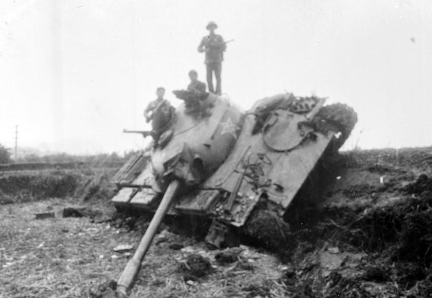 Xe tăng của địch bị quân ta đánh gục ngay loạt đạn đầu tiên tại bản Sẩy, huyện Hòa An, tỉnh Cao Bằng. (Ảnh: Trần Mạnh Thường/TTXVN phát)