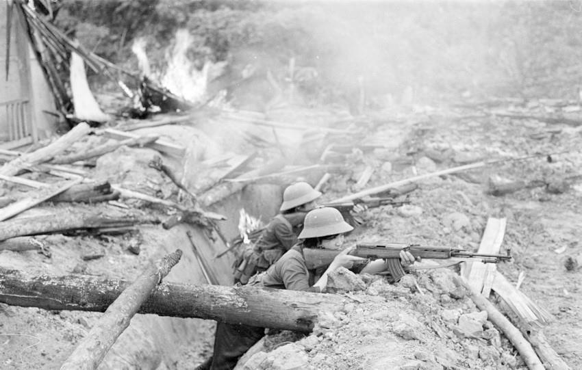 Chiến sỹ Đại đội 39, Đoàn 313 Hà Tuyên tổ chức tiêu diệt các ụ súng của địch, tạo điều kiện thuận lợi cho bộ binh ta chiếm điểm cao. (Ảnh: Minh Lộc/TTXVN)