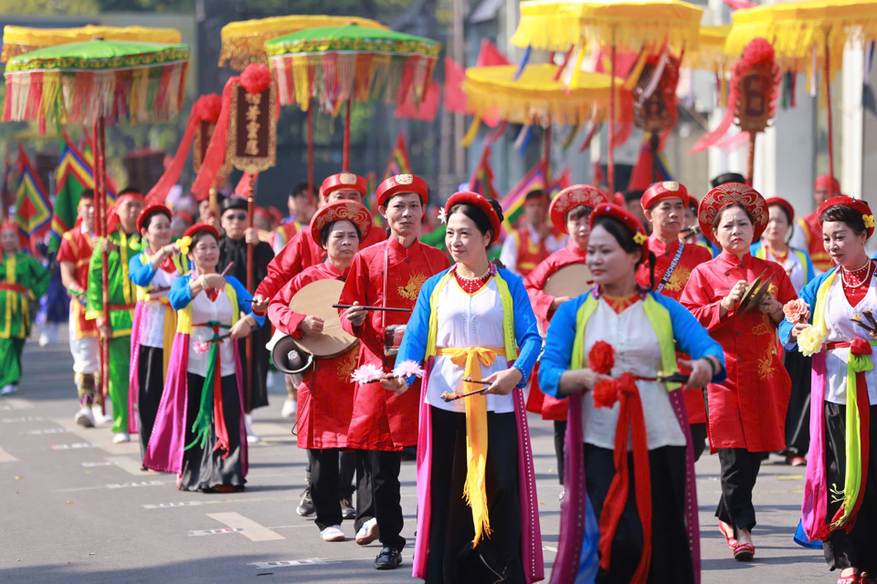 Hoạt động văn hóa trên không gian phố đi bộ quanh hồ Hoàn Kiếm, Hà Nội. Ảnh: Phạm Hùng