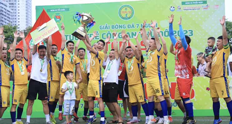 Lễ bế mạc Giải bóng đá 7 người tuổi trẻ Công an Thủ đô 2023 vừa diễn ra tại Sân vận động Trung tâm Văn hóa - Thông tin và Thể thao quận Hoàng Mai (Hà Nội).