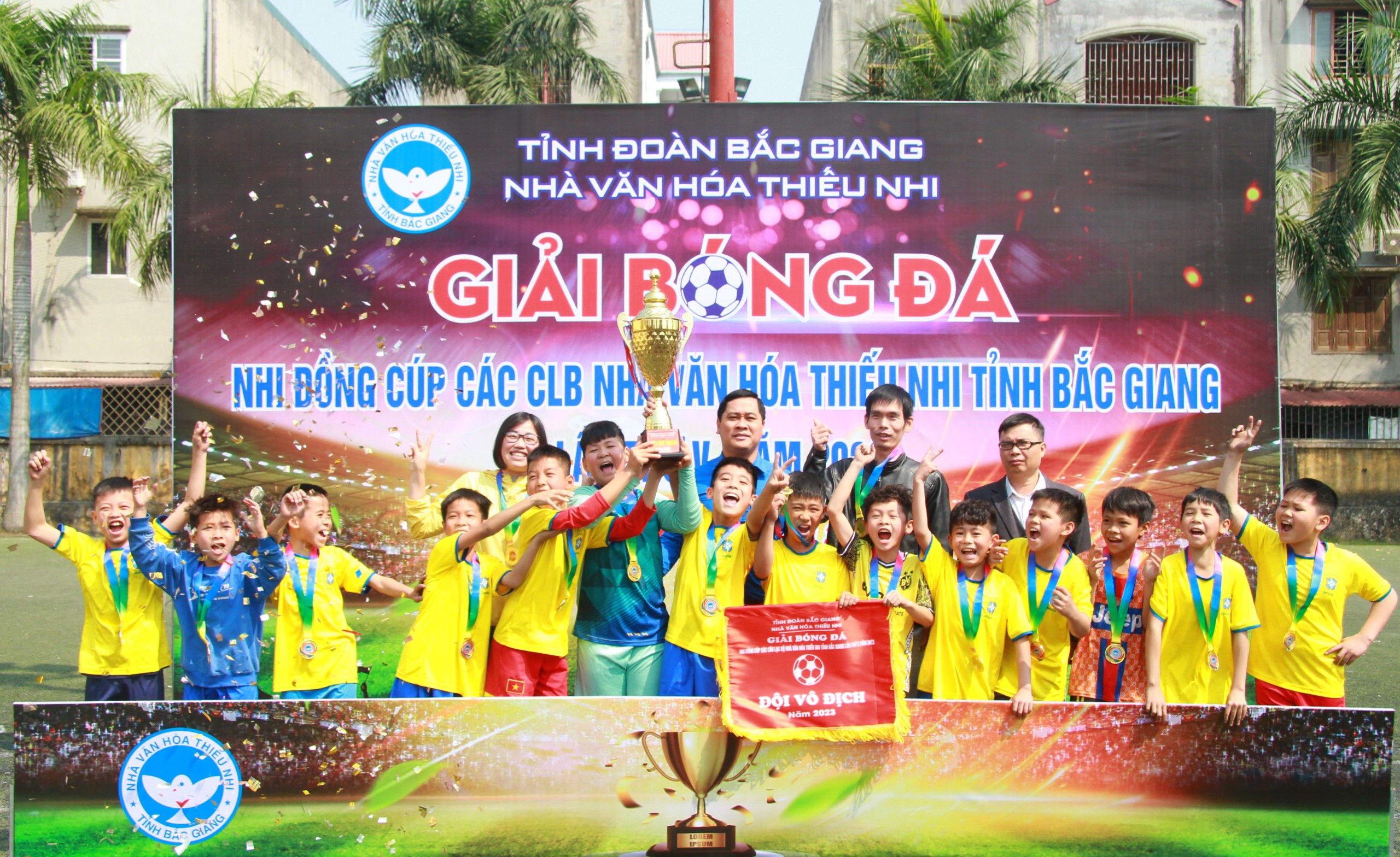 Ở trận chung kết diễn ra giữa CLB Bóng đá Trường Tiểu học Đông Thành và CLB Bóng đá Trường Tiểu học Đồng Sơn đã đem lại cho khán giả những pha bóng hay và đẹp mắt. Các cầu thủ của CLB Bóng đá Trường Tiểu học Đông Thành nổi trội hơn về kỹ thuật, thể hình và thể lực đã xuất sắc giành cúp vô địch của Giải bóng đá Nhi đồng Cúp các Câu Lạc bộ Nhà Văn hóa Thiếu nhi tỉnh Bắc Giang lần thứ V, năm 2023. Ngoài ra, Ban Tổ chức đã trao giải cầu thủ và thủ ngôn xuất sắc nhất giải đấu cho cầu thủ Nguyễn Thành Long của CLB Bóng đá Trường Tiểu học Đồng Sơn và thủ ngôn Nguyễn Đức Dũng của CLB Bóng đá Trường Tiểu học Đông Thành.
