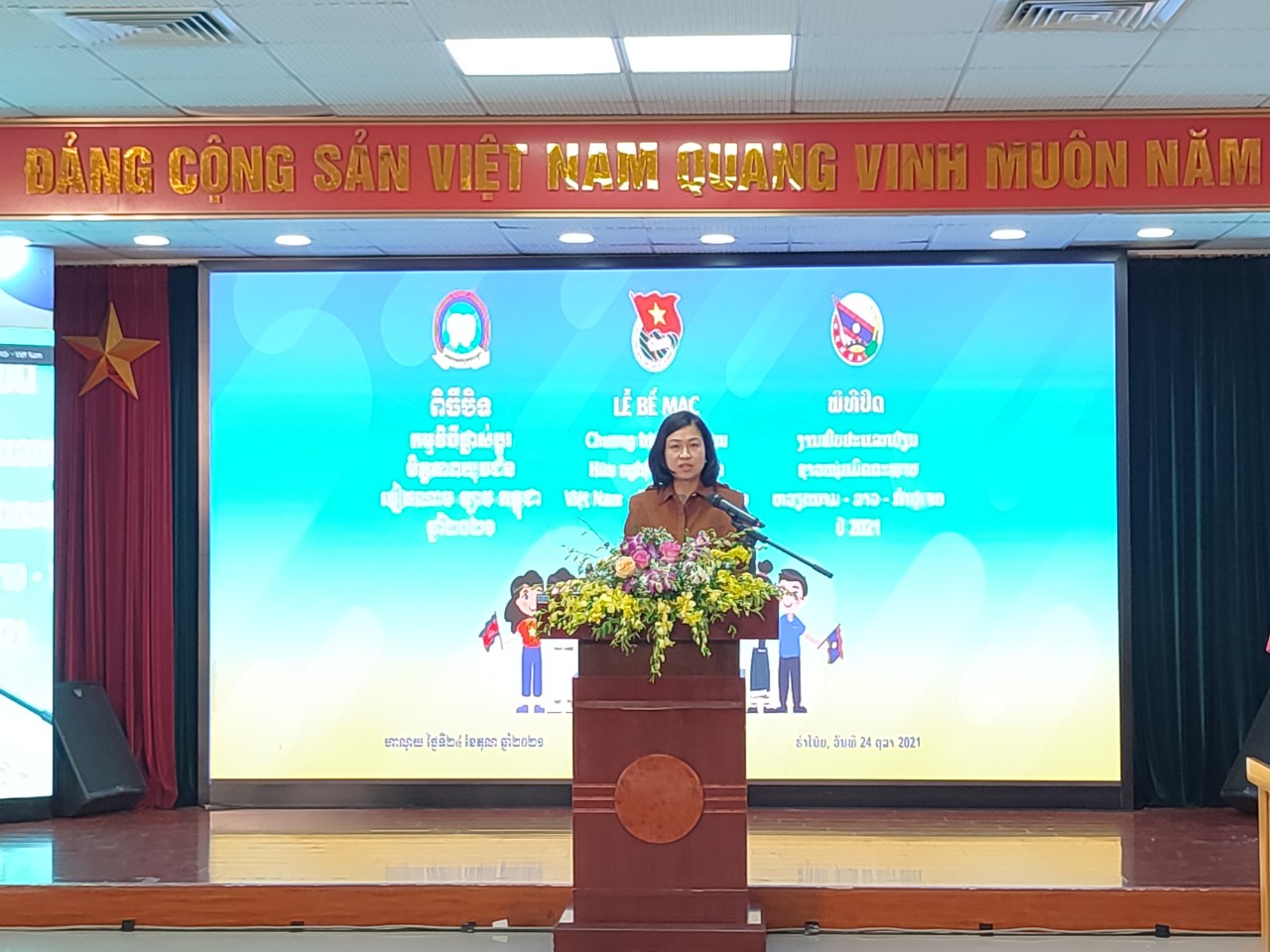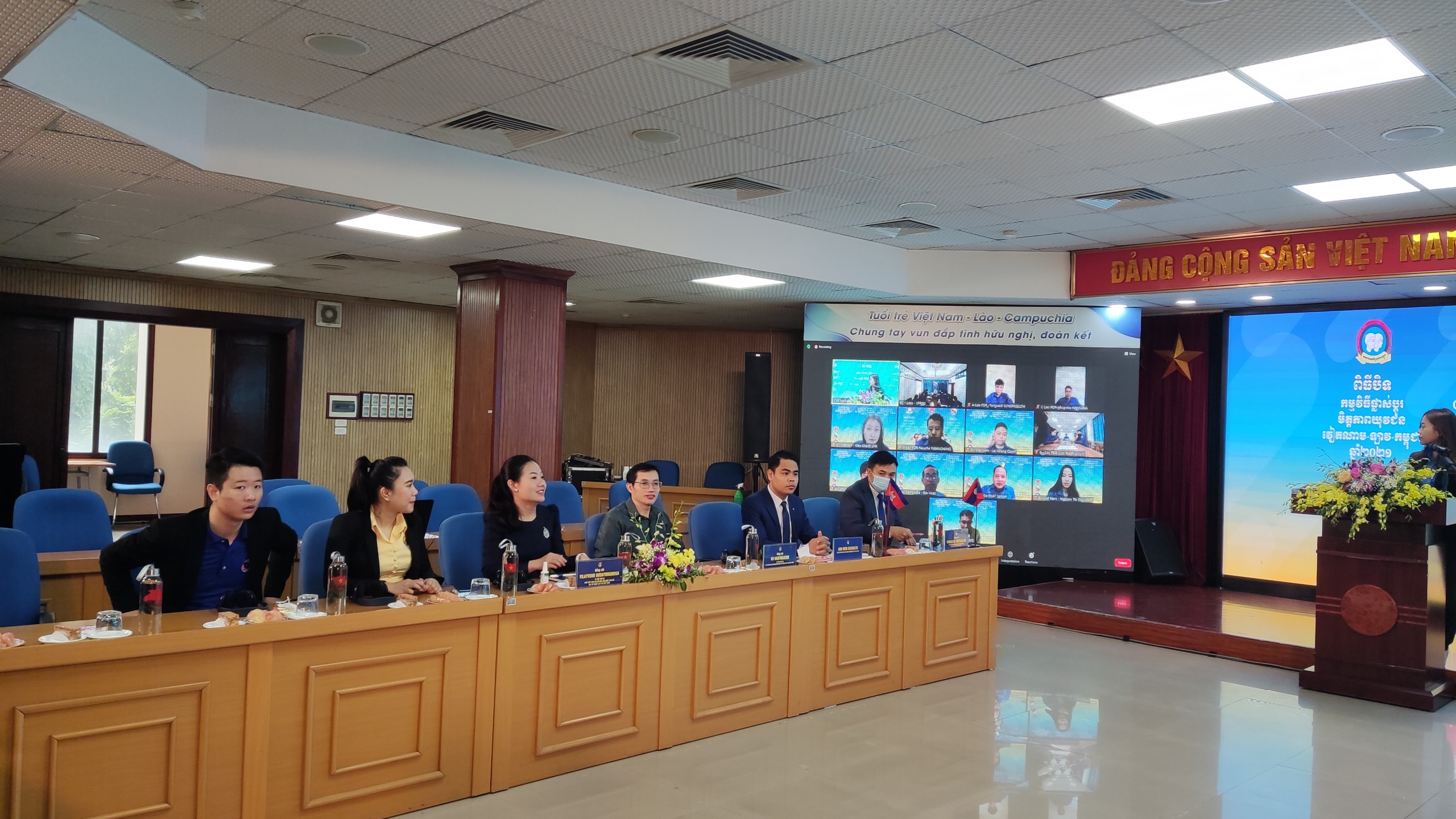 ĐTN: Sáng ngày 24/10 đã diễn ra Lễ Bế mạc Chương trình giao lưu hữu nghị thanh niên Việt Nam – Lào – Campuchia năm 2021. Chương trình diễn ra từ ngày 22- 24/10 theo hình thức trực tuyến với 03 điểm cầu tại ba nước.