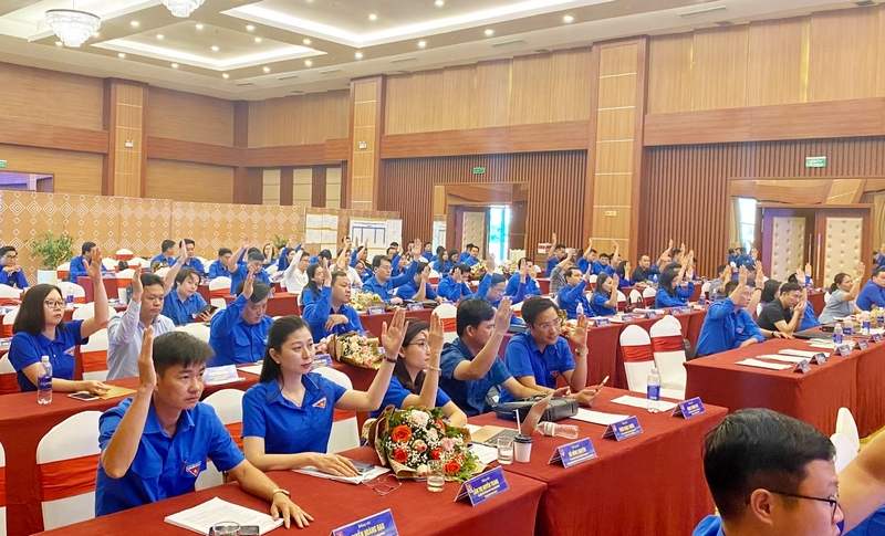 Các đồng chí Ủy viên BCH Trung ương Đoàn biểu quyết thông qua Nghị quyết của Hội nghị