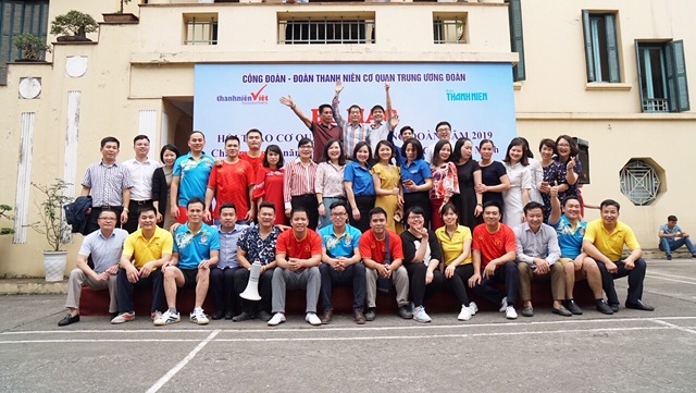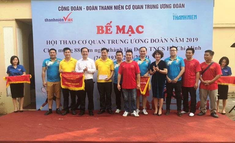 Đội tuyển thi đấu và các cổ động viên nhiệt tình của Văn phòng Trung ương Đoàn.